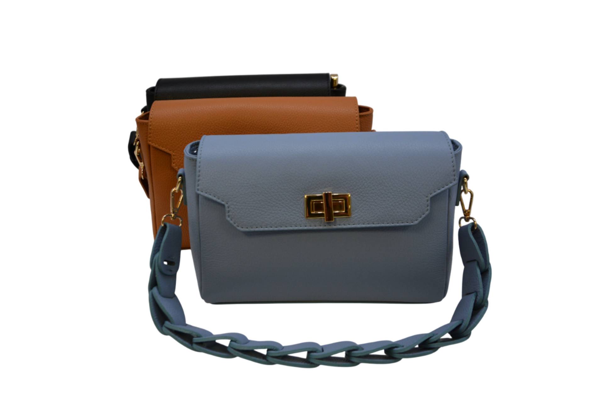 kurzer Umhängegurt Leder Flechtoptik, Überwurfpatte, Drehverschluss, mittiv RV, innen seitl.-RV-Tasche, Umhängegurt einhängbar, Acc. Gold