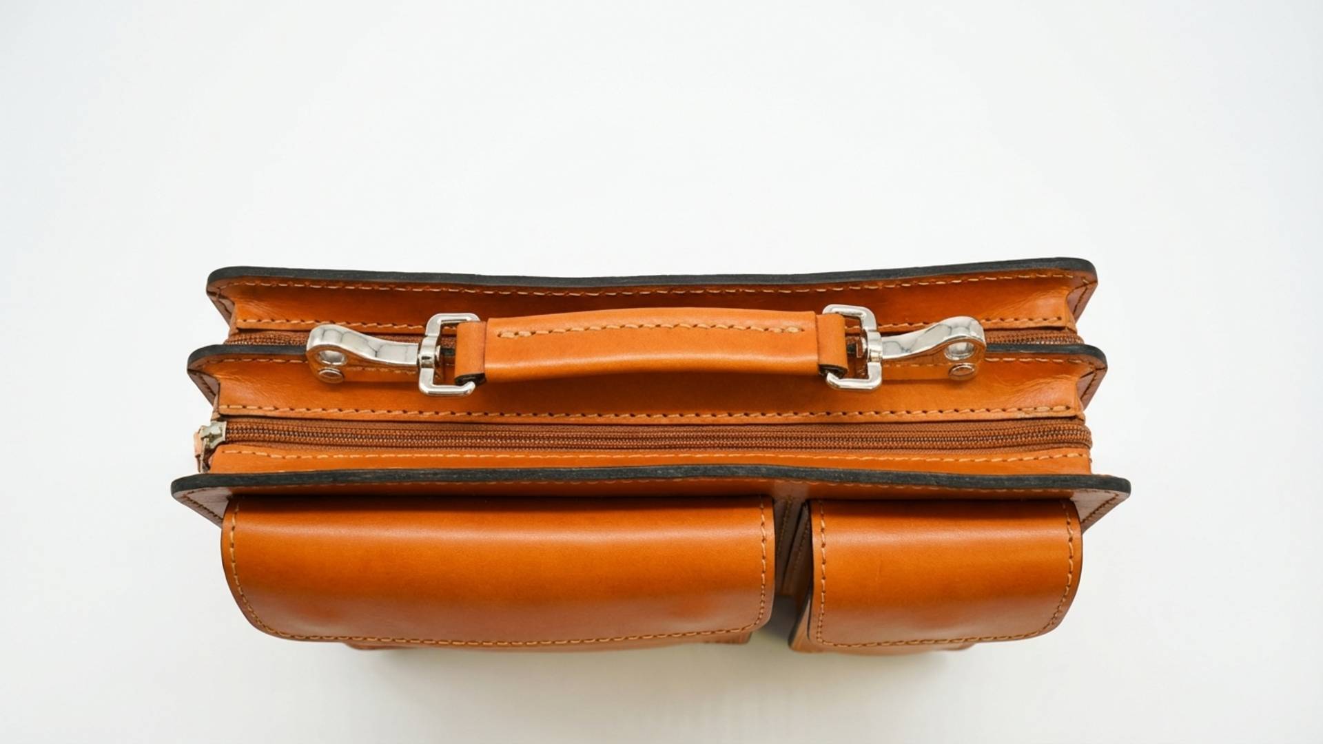 Umhängegurt einhängbar, Tragegriff, RT mit RV, mittig 2 Fächer mit RV, VT mit grosser und kleiner Pattentasche