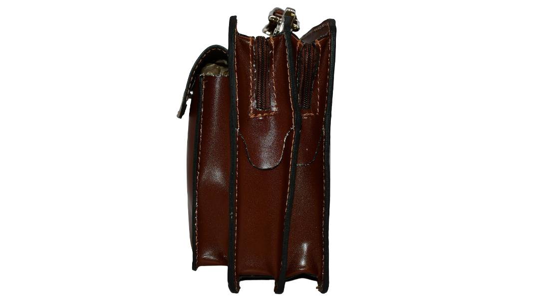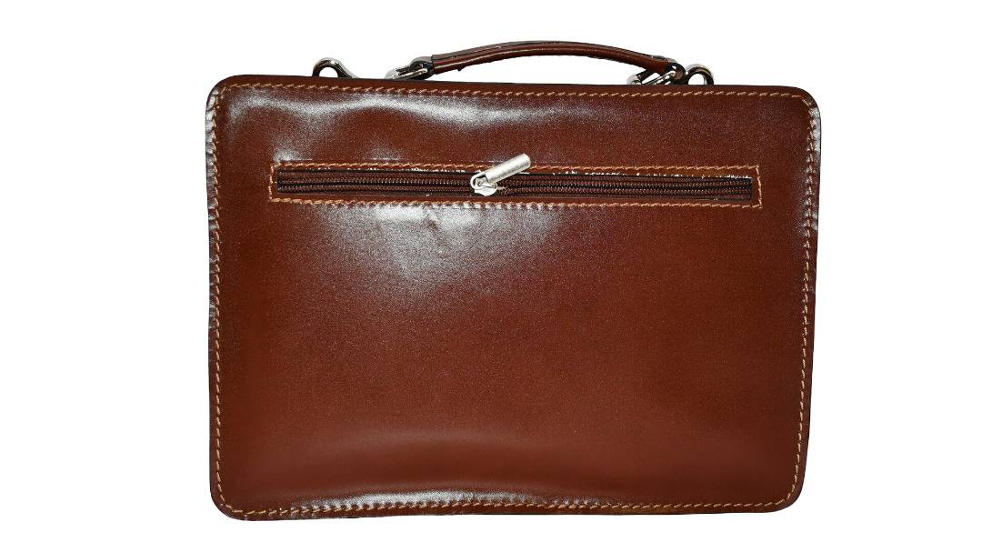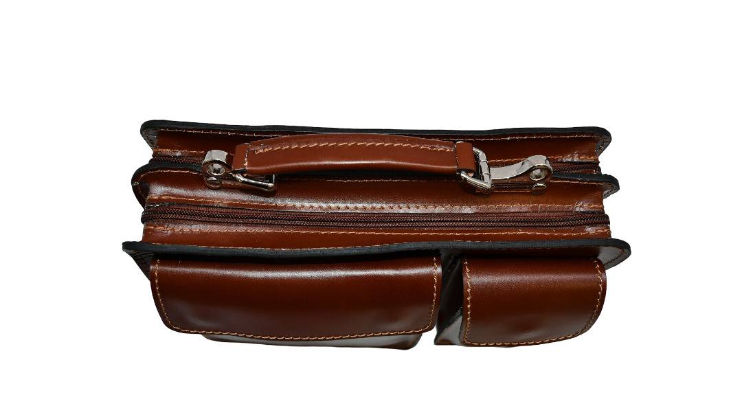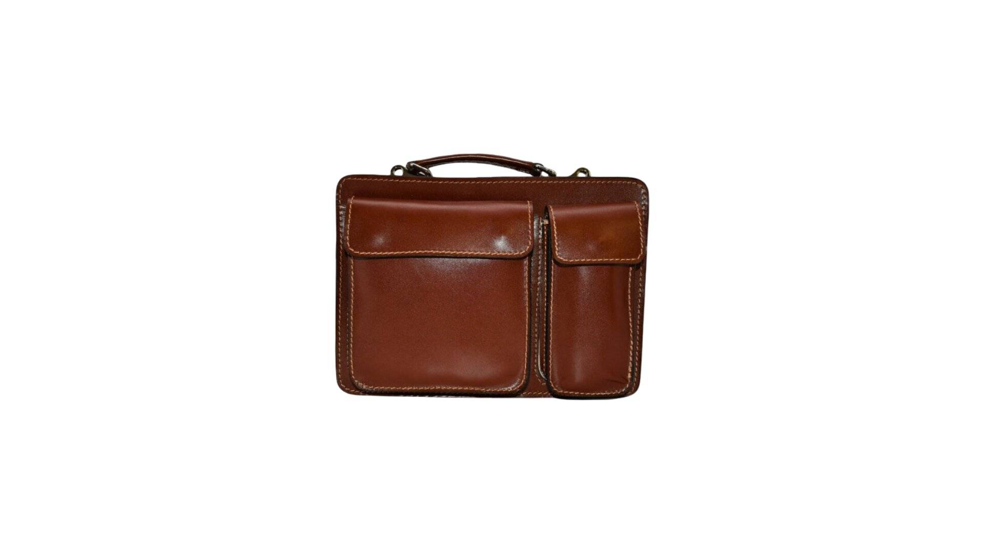 Umhängegurt einhängbar, Tragegriff, RT mit RV, mittig 2 Fächer mit RV, VT mit grosser und kleiner Pattentasche