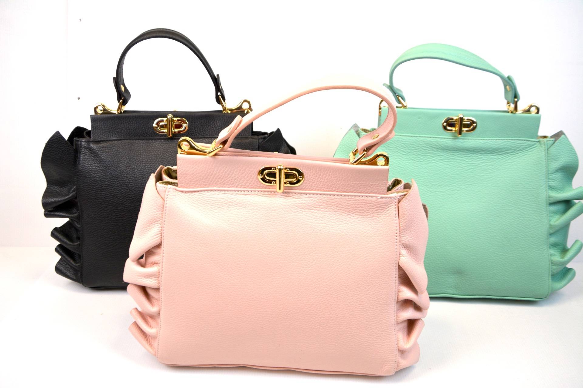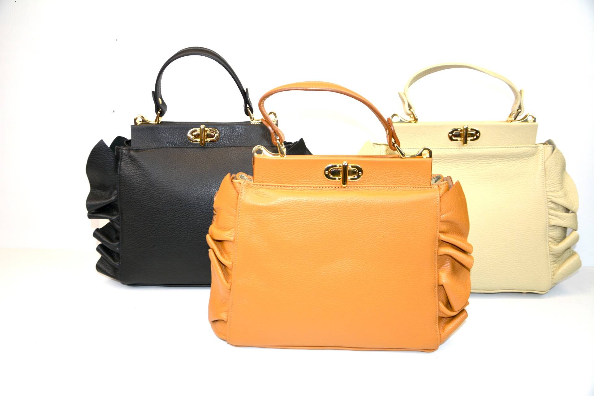 Mittelgroße Hand- und Umhängetasche, ECHTES LEDER / VERA PELLE / STYLED+MADE IN ITALY, Länge ca. 31 cm, Weite ca. 14 cm, Höhe ca. 30 cm (ohne Henkel/Griffe), unverbindliche Preisempfehlung € 94,90 bis € 144,00 (Endverbraucherpreis)