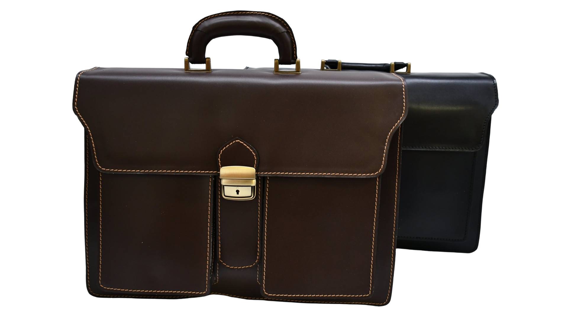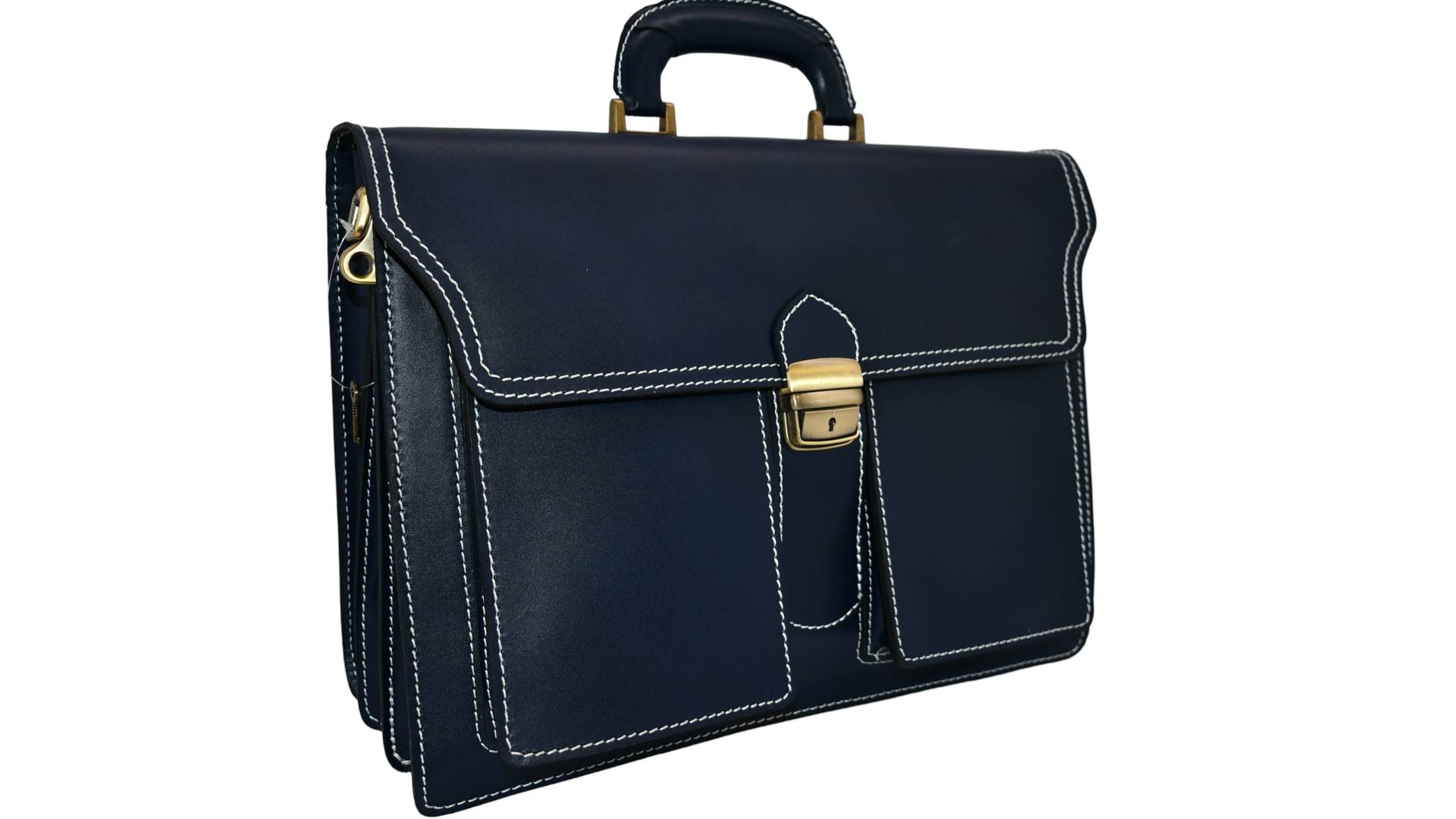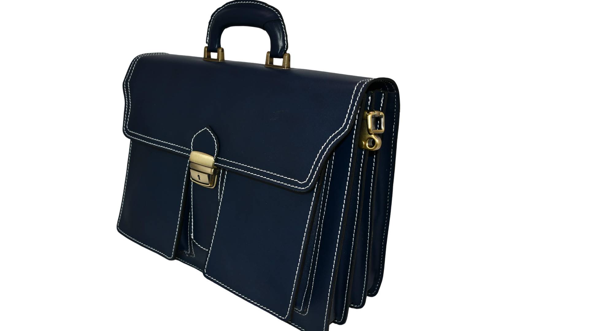 Umhängegurt einhängbar, Tragegriff, seitl. 3 Fachfalten, RT mit Außen-RV, Überwurfpatte mit Schloß, 3 Innenfächer, VT mit 2 Fachtaschen re+li vom Verschluss