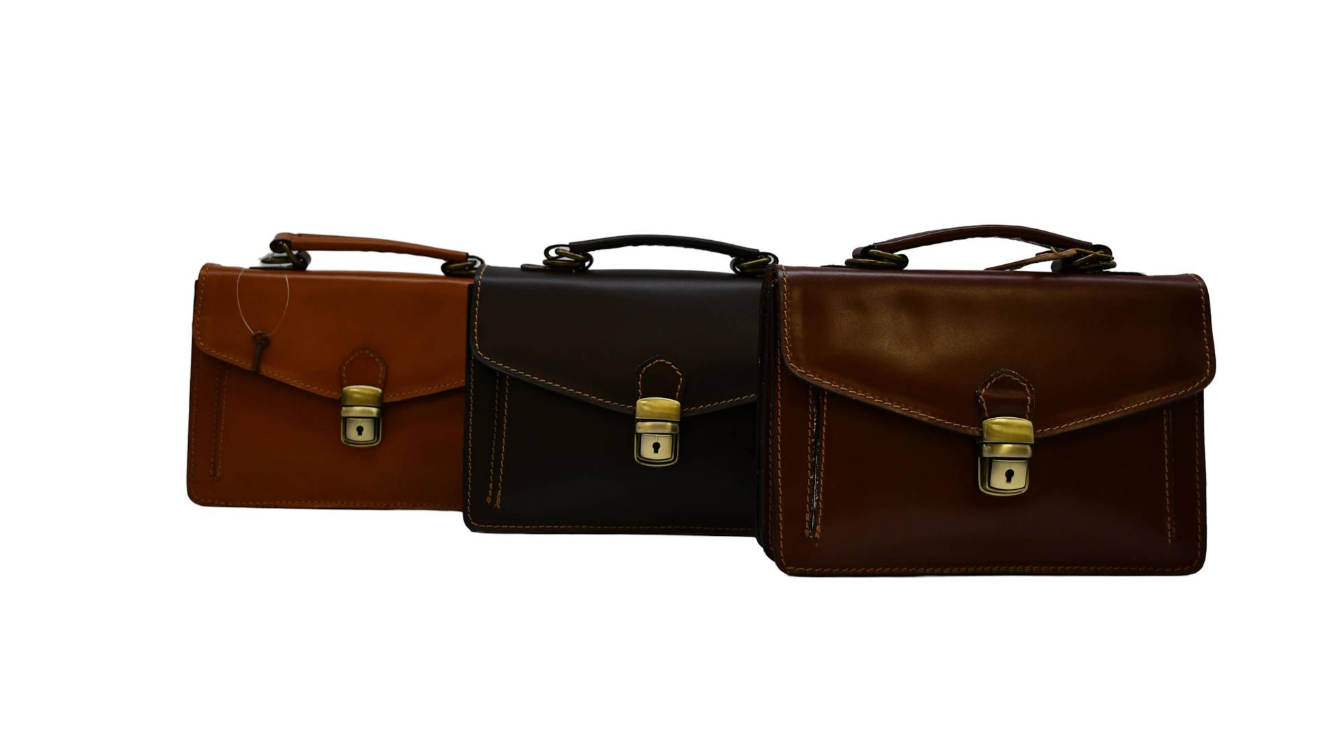 Umhängegurt einhängbar, Tragegriff, Überwurfpatte mit Schloß, RT mit RV, 3 Innenfächer, VT mit flacher Fachtasche, je nach Farbe Kontrastnähte