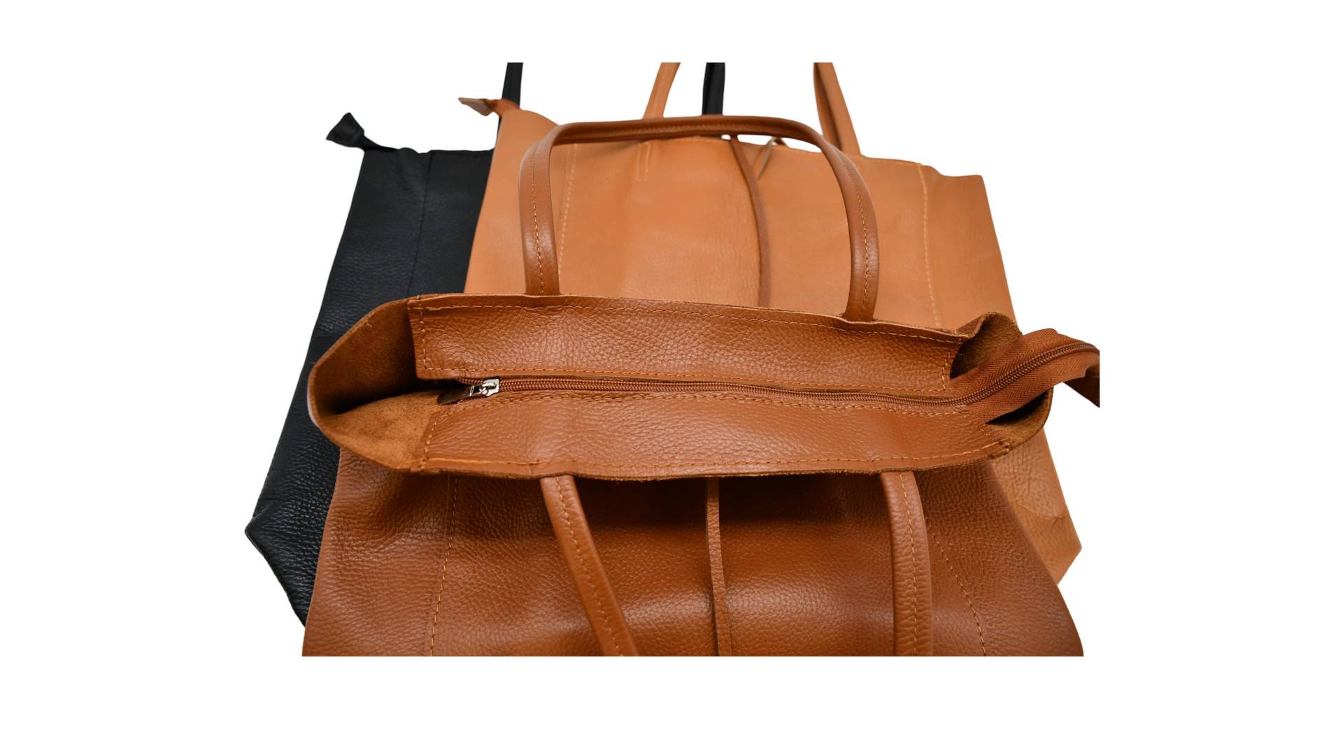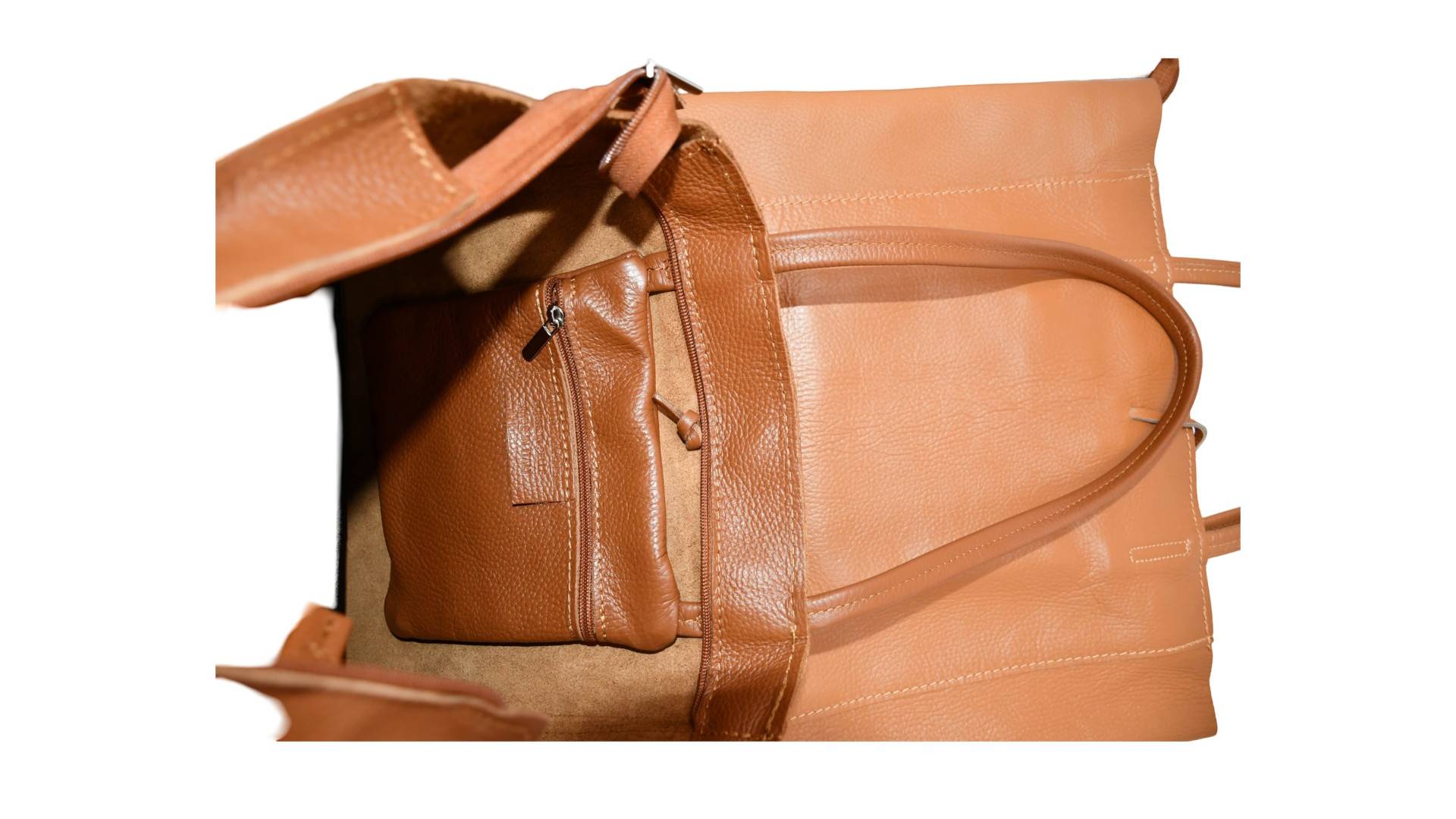 Shopper, lange Henkel, mittig RV, innen kleiner Lederbeutel mit RV, innen Leder (linke Seite vom Collinoso)