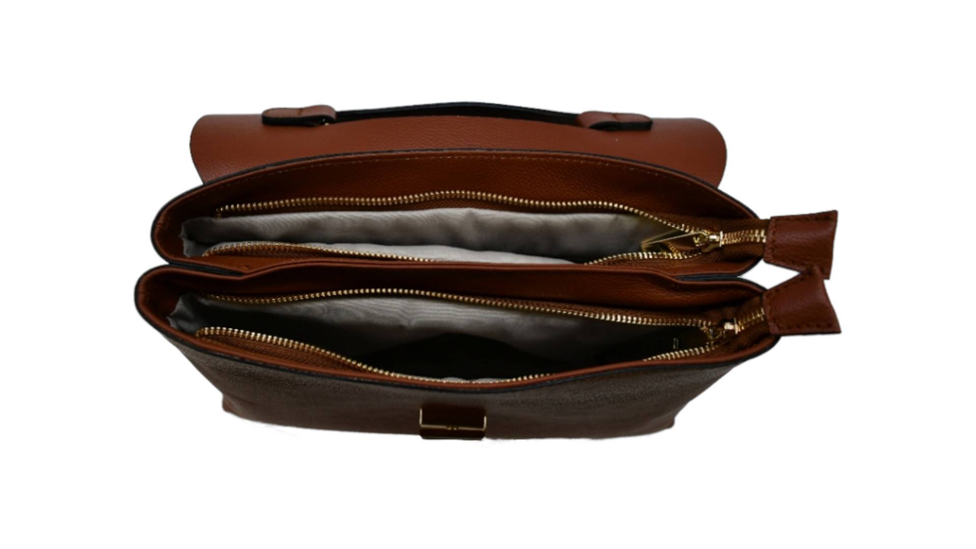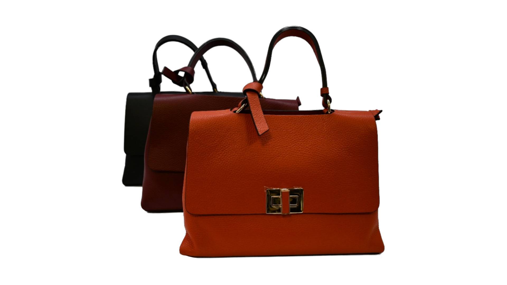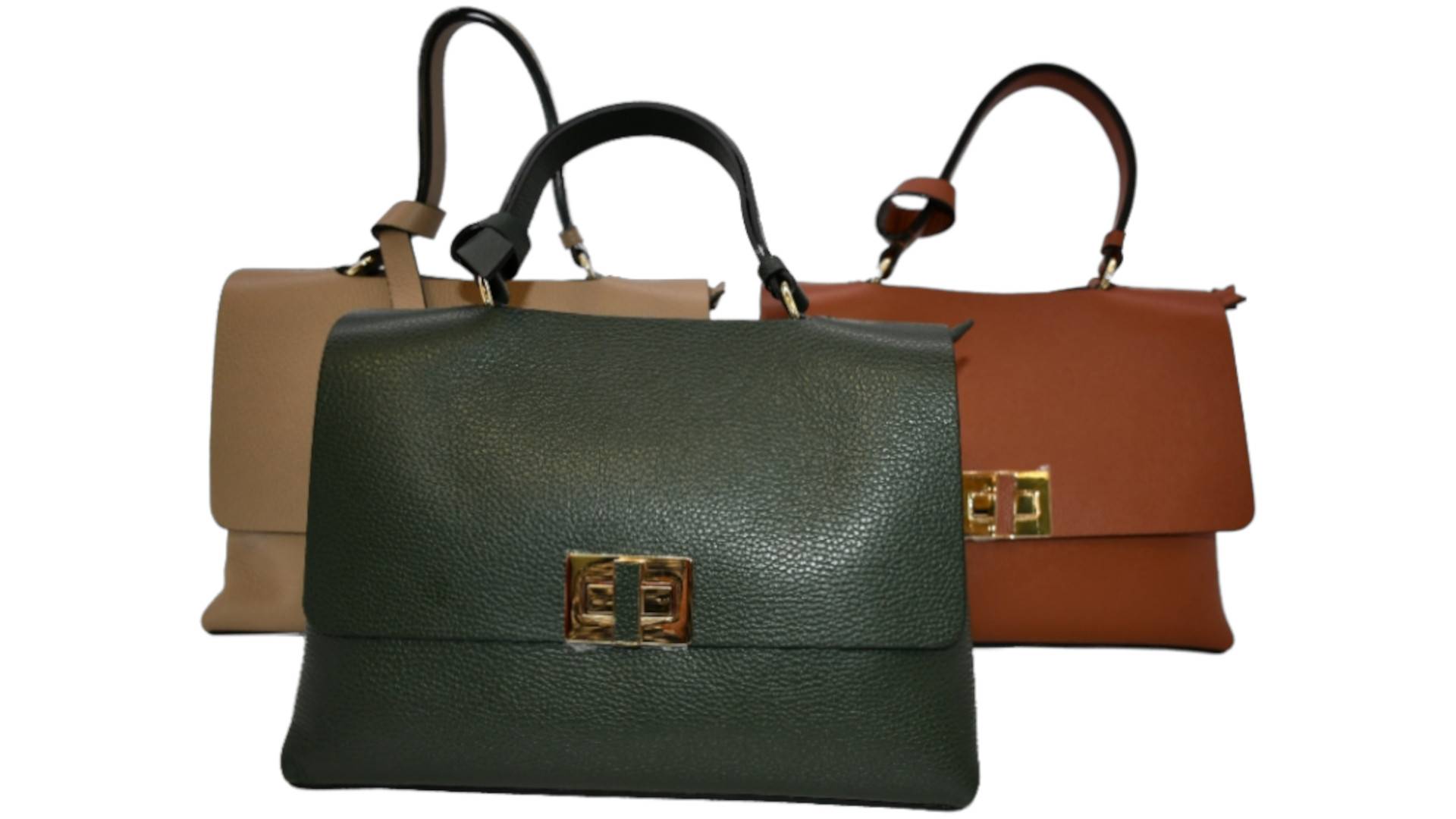 Mittelgroße Hand- und Umhängetasche, ECHTES LEDER / VERA PELLE / STYLED+MADE IN ITALY, L 32 x B 13 x H 22 (ohne Henkel/Griffe), Tragegriff mittig auf Überwurfpatte, Drehverschluss, innen mittig 2x RV mit je 1 Taschenbeutel, seitl. RV und 2x Einschubtasche, Acc. gold, Umhängegurt Leder, unverbindliche Preisempfehlung € 124,90 bis € 189,00 (Endverbraucherpreis)