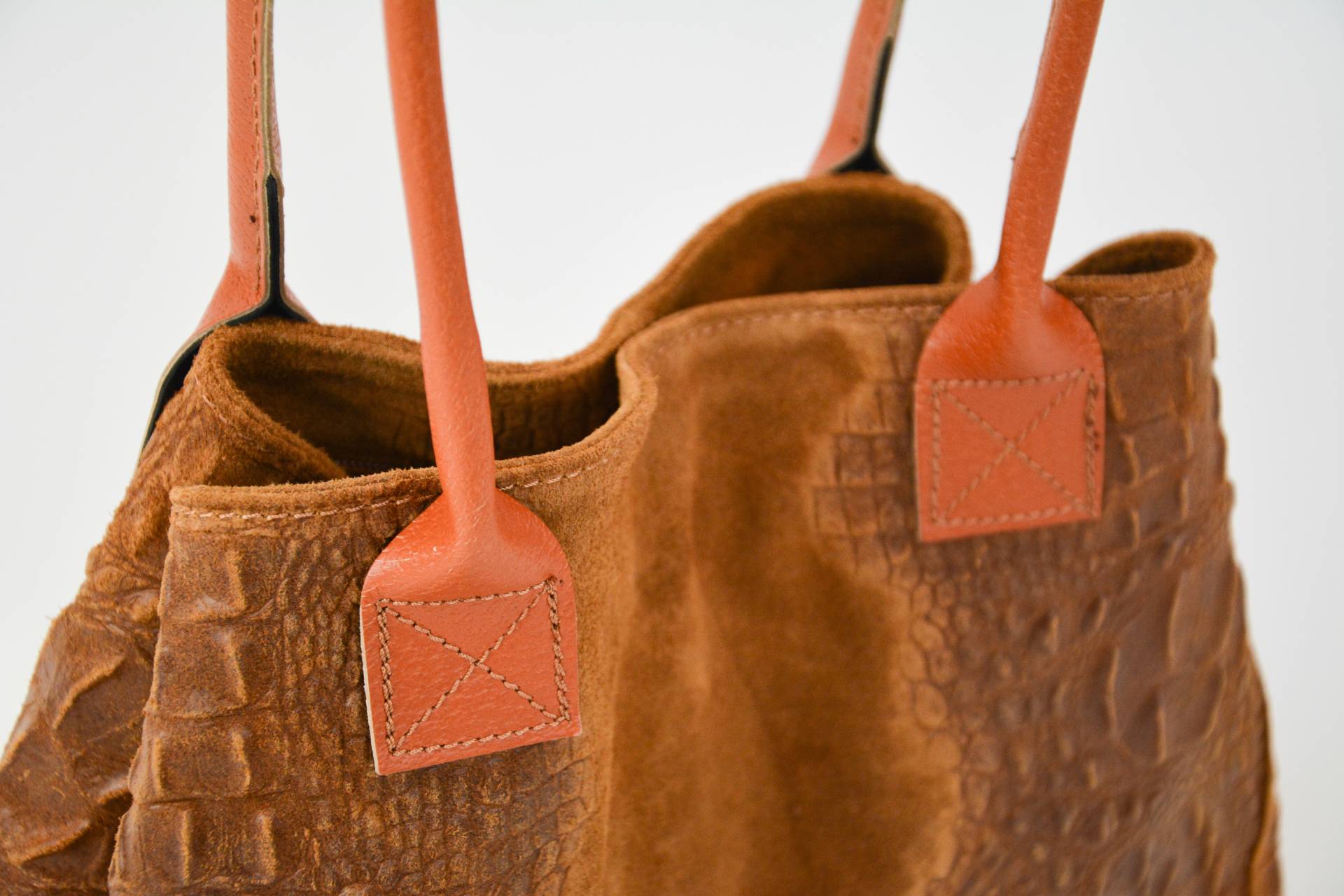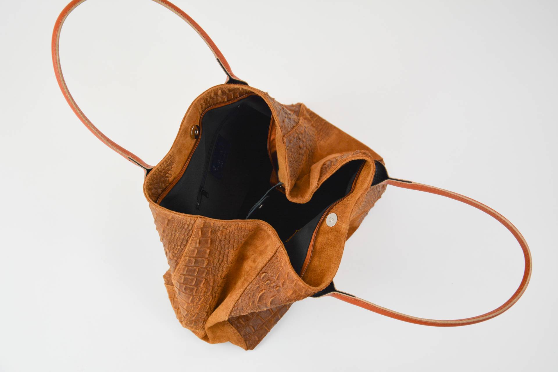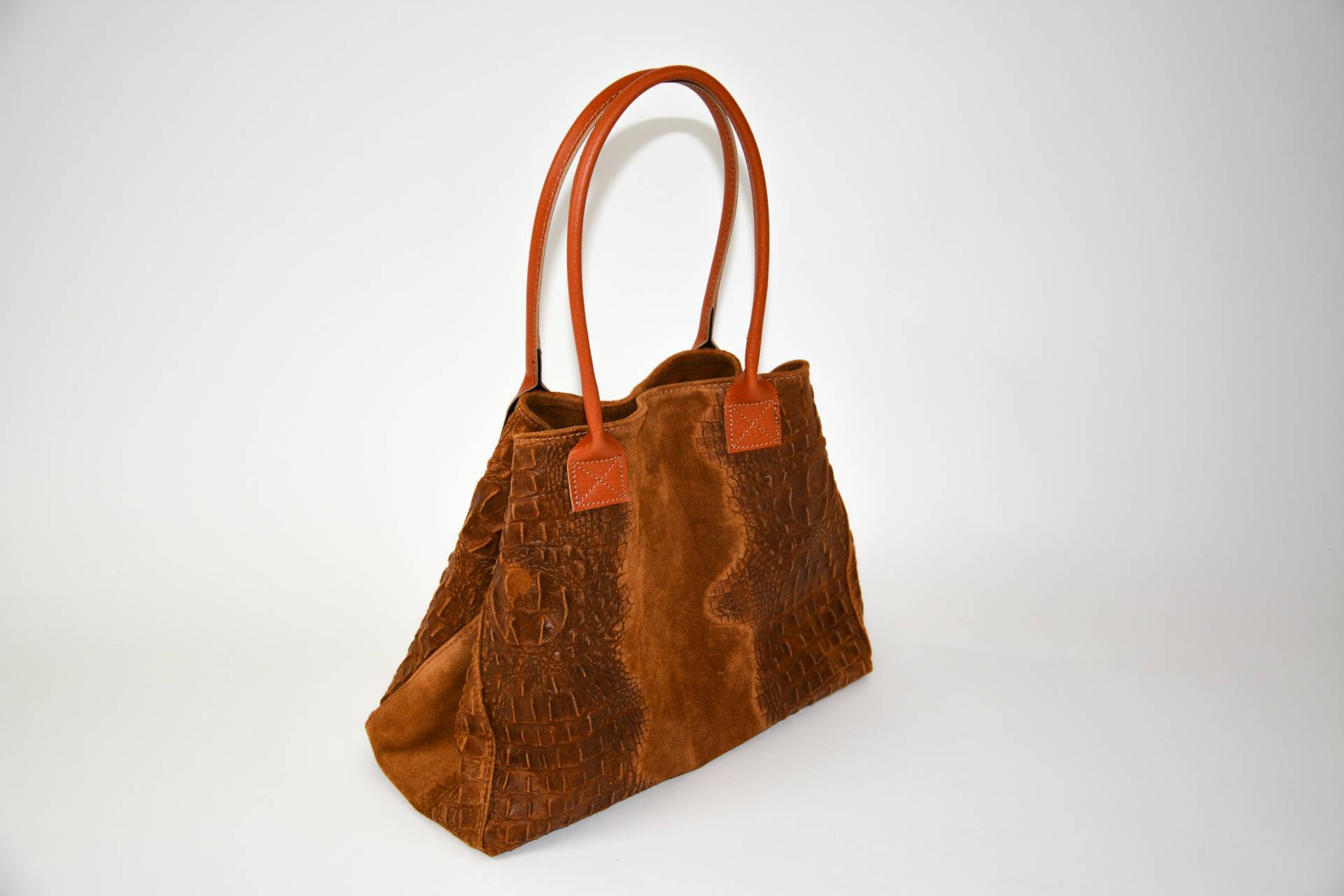 Vario Shopper- und Handtasche, ECHTES LEDER / VERA PELLE / STYLED+MADE IN ITALY, Kroko mit Velours, schwarz, braun, dunkelblau, uni, Länge ca. 48 cm, Weite ca. 13 cm, Höhe ca. 28 cm (ohne Henkel/Griffe), unverbindliche Preisempfehlung € 99,90 bis € 139,90 (Endverbraucherpreis)