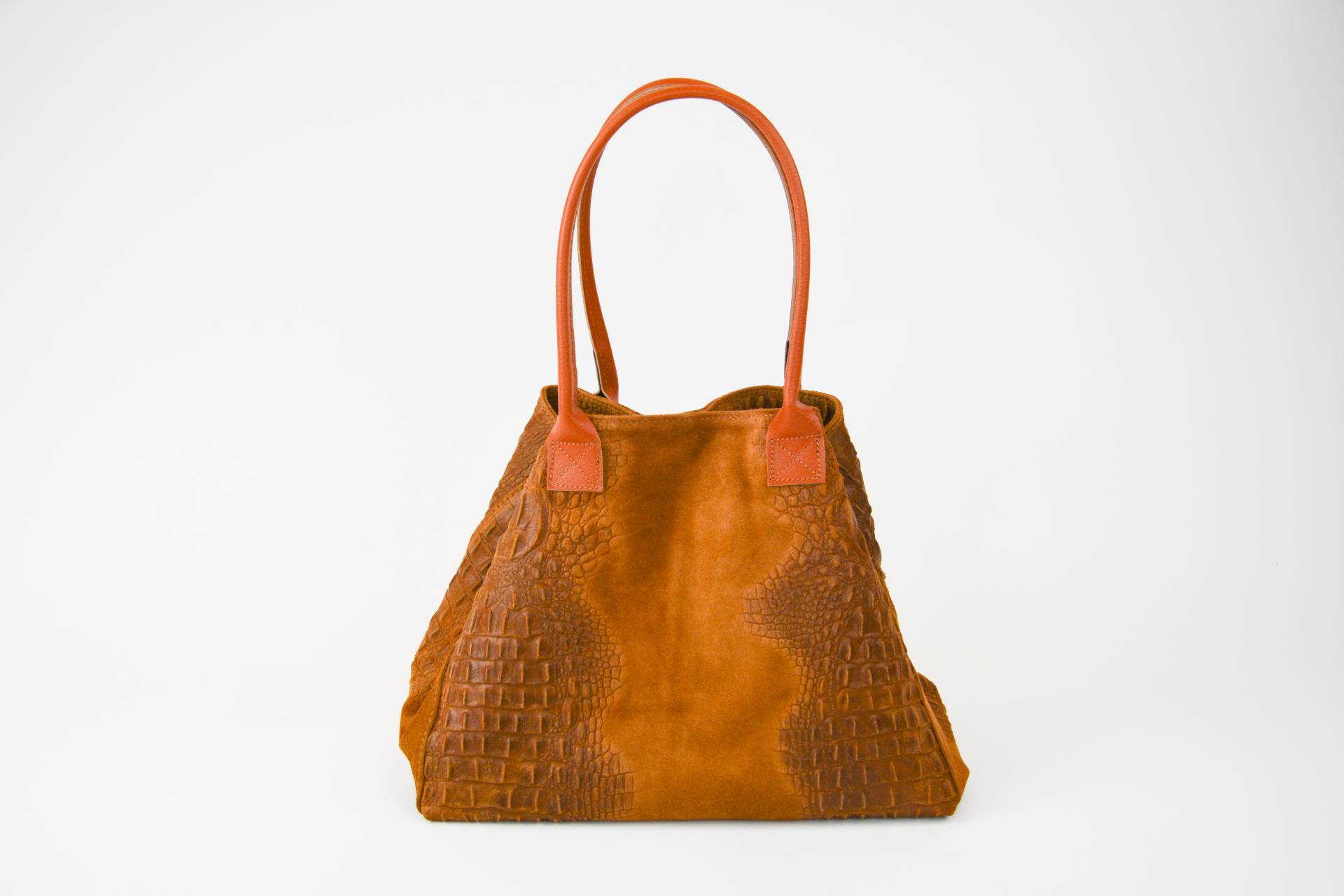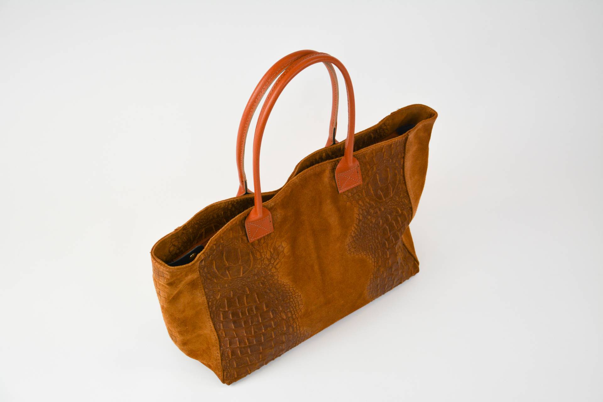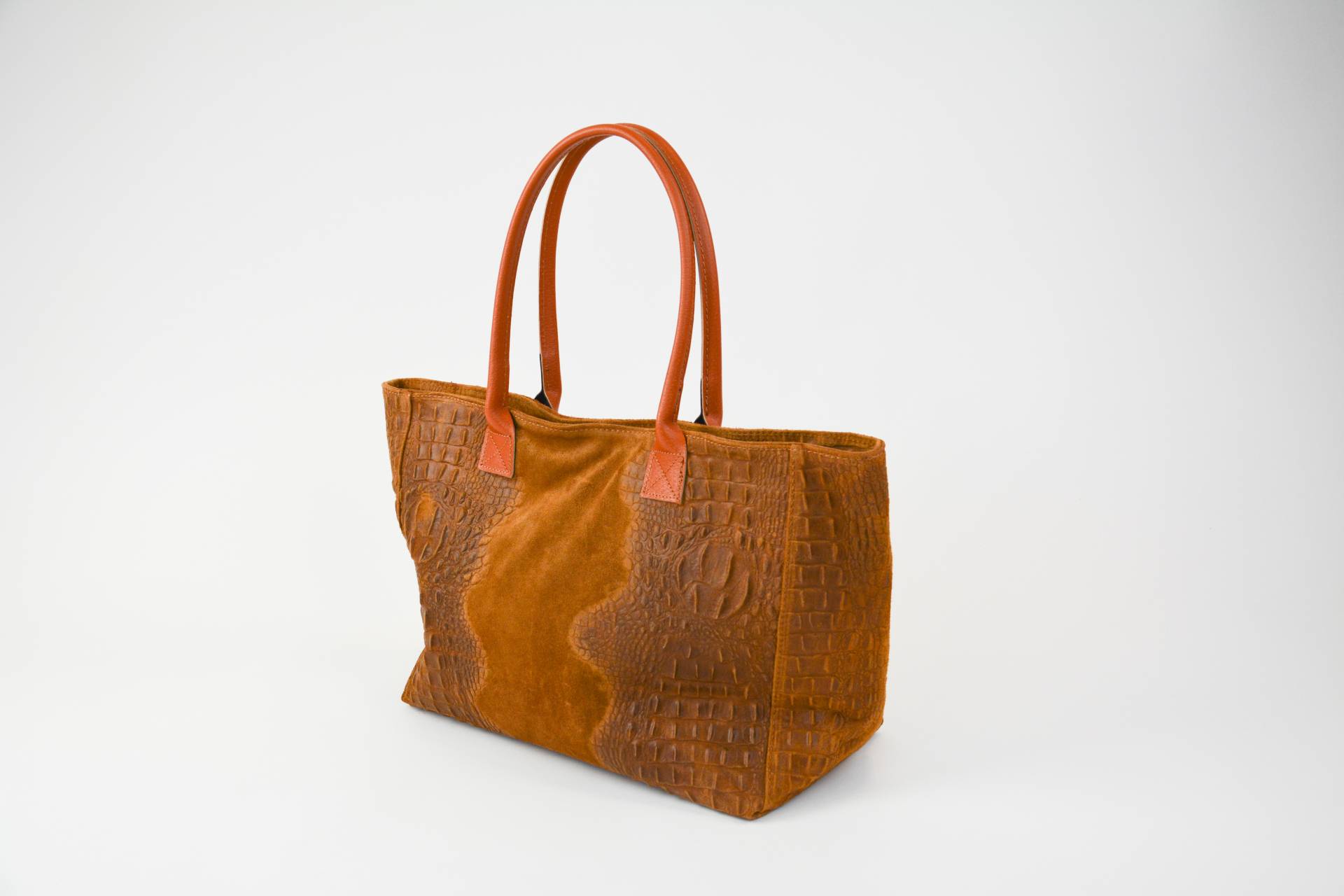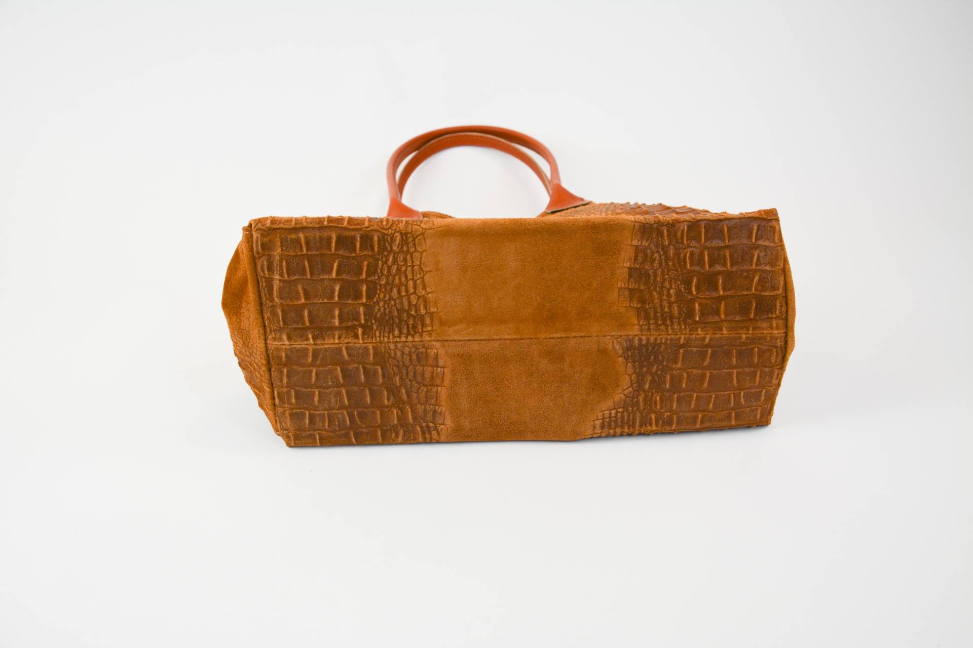 Vario Shopper- und Handtasche, ECHTES LEDER / VERA PELLE / STYLED+MADE IN ITALY, Kroko mit Velours, schwarz, braun, dunkelblau, uni, Länge ca. 48 cm, Weite ca. 13 cm, Höhe ca. 28 cm (ohne Henkel/Griffe), unverbindliche Preisempfehlung € 99,90 bis € 139,90 (Endverbraucherpreis)