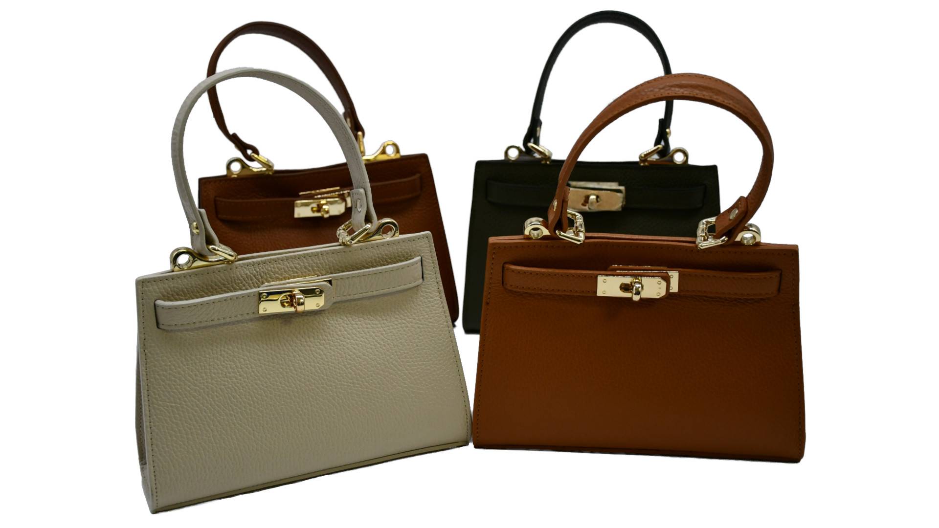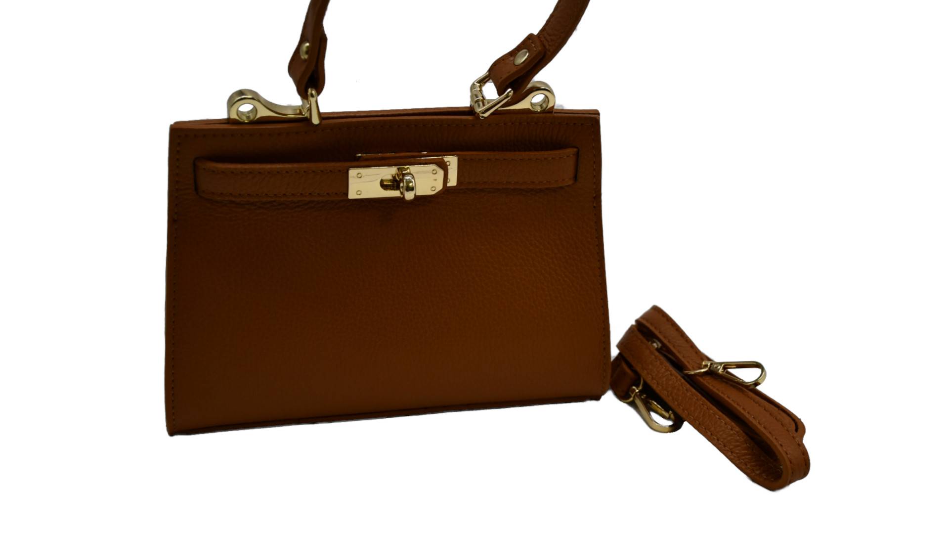 Kleine Hand- und Umhängetasche, ECHTES LEDER / VERA PELLE / STYLED+MADE IN ITALY, L 23 x B 7 x H 17 (ohne Henkel/Griffe), Tragegriff aus Leder, umlaufender Verschlussgurt, innen seitl. RV-Tasche, Umhängegurt einhängbar, Acc. gold, unverbindliche Preisempfehlung € 69,90 bis € 99,00 (Endverbraucherpreis)