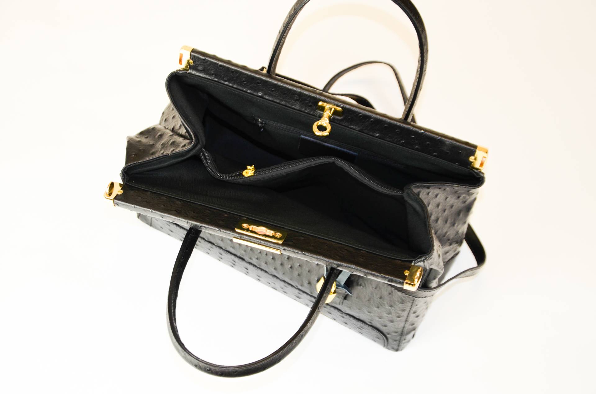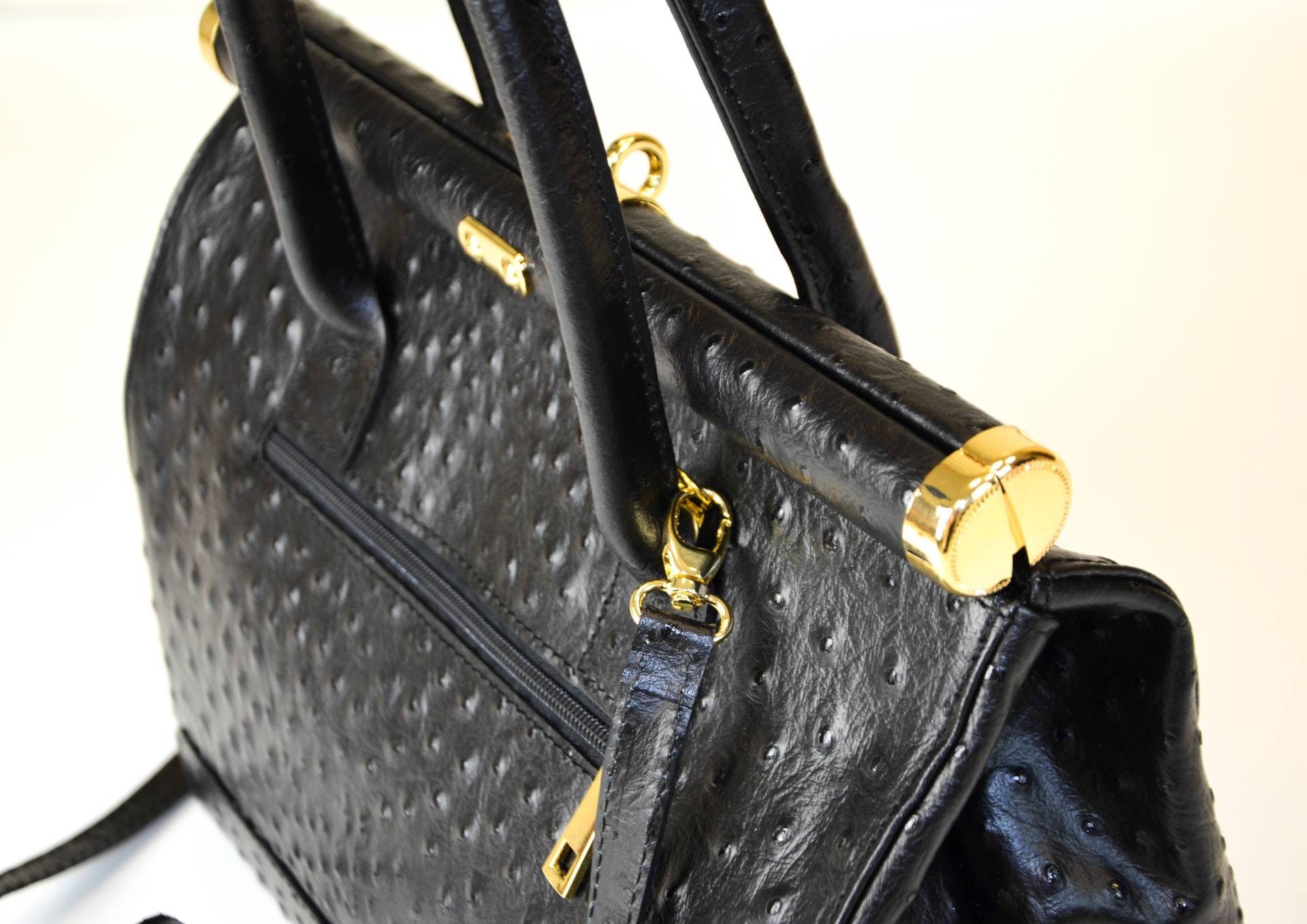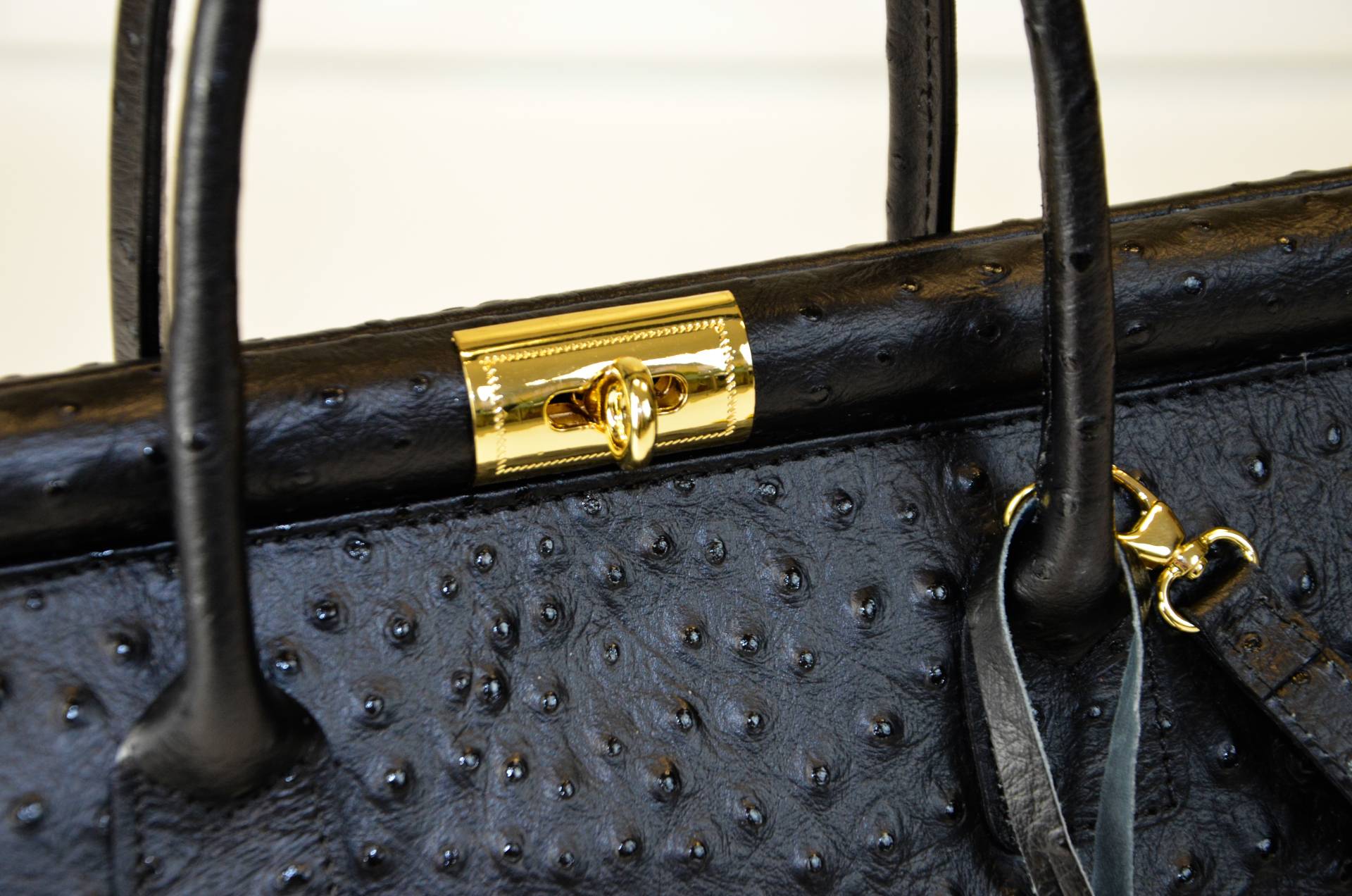 Hand- und Umhängetasche, Accessoires gold, ECHTES LEDER / VERA PELLE / STYLED+MADE IN ITALY, Straußenlederoptik, schwarz, cognac, in allen Farben lieferbar, Länge ca. 36 cm, Weite ca. 16 cm, Höhe ca. 28 cm (ohne Henkel/Griffe), unverbindliche Preisempfehlung € 109,90 bis € 169,90 (Endverbraucherpreis)