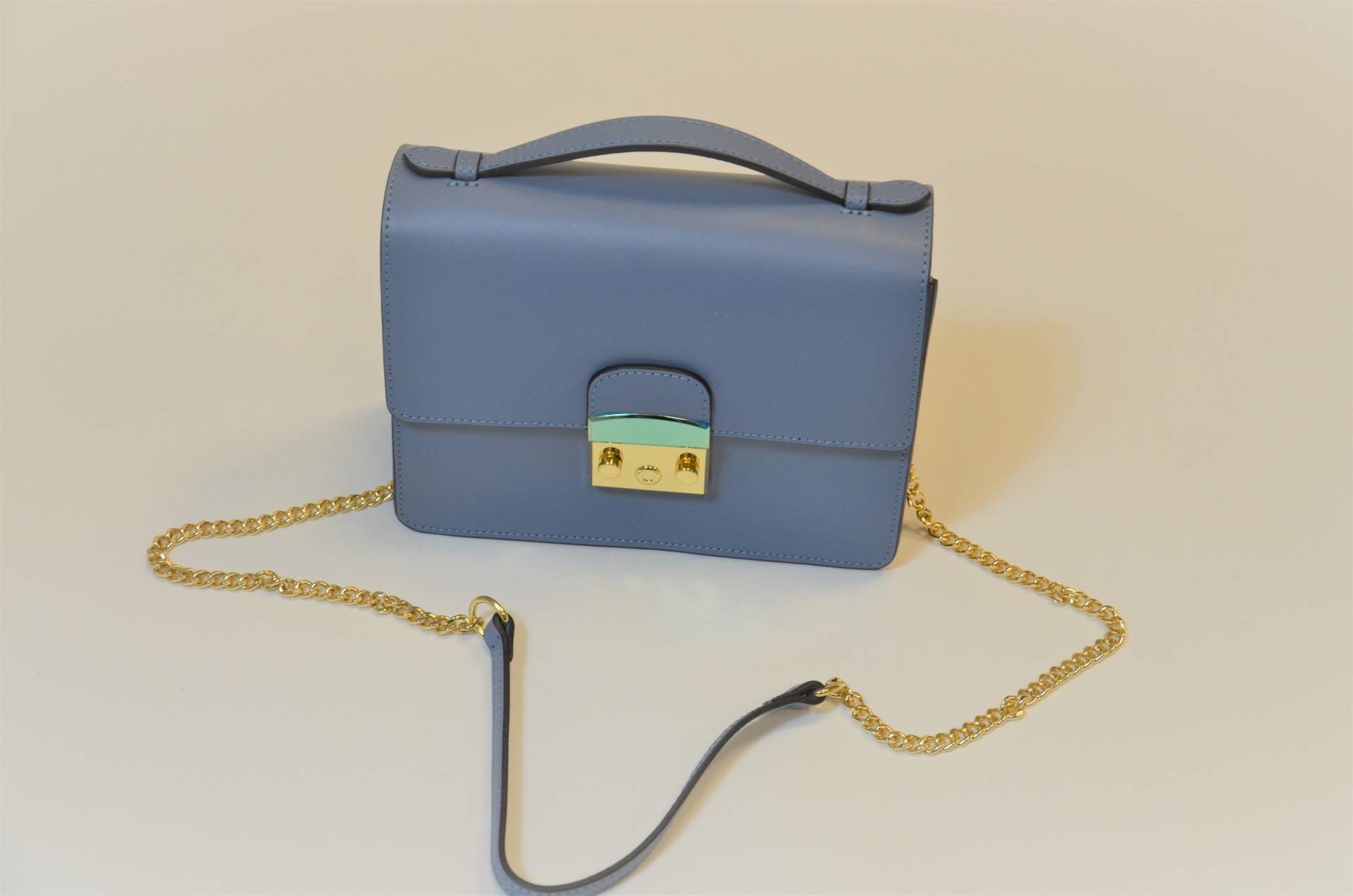 Mittelgroße Hand- und Umhängetasche, ECHTES LEDER / VERA PELLE / STYLED+MADE IN ITALY, Leder glatt (LISCIO), alle Farben lieferbar, Länge ca. 22 cm, Weite ca. 9 cm, Höhe ca. 18 cm, Umhängekette + Leder, Überwurfpatte, innen seitl. Einschubtasche, Acc. gold, Ledergriff, Futter: Leder (hochwertig), unverbindliche Preisempfehlung € 99,90 bis € 139,90 (Endverbraucherpreis)