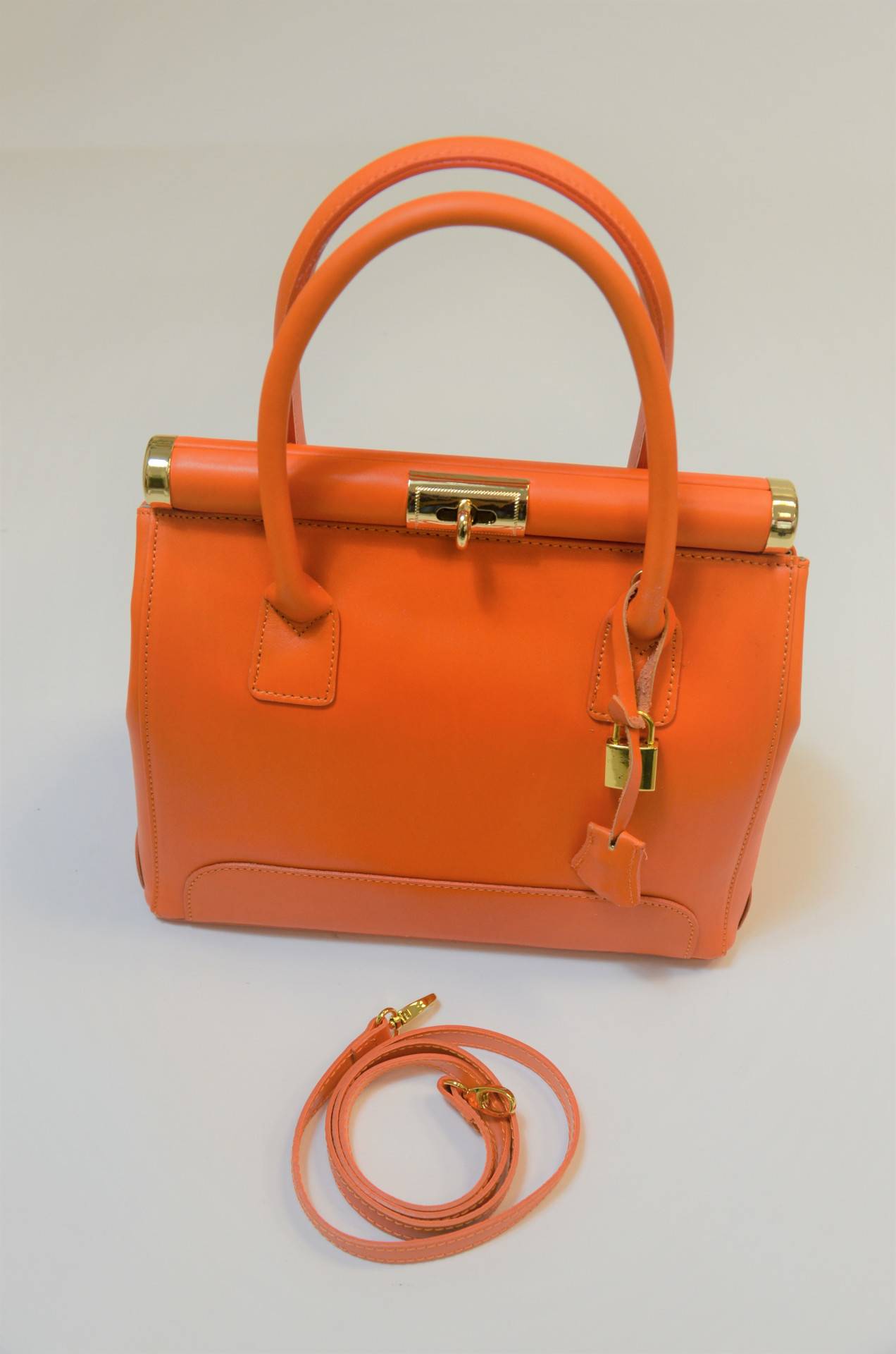 Mittelgroße Hand- und Umhängetasche, ECHTES LEDER / VERA PELLE / STYLED+MADE IN ITALY, Leder glatt (LISCIO),  Länge ca. 30 cm, Weite ca. 16 cm, Höhe ca. 25 cm, Umhängegurt einhängbar: mittig mit RV und innen seitl. RV-Tasche, Acc. gold, 2 Ledergriffe, Drehverschluss, Futter: Synthetik, unverbindliche Preisempfehlung € 99,90 bis € 149,90 (Endverbraucherpreis)