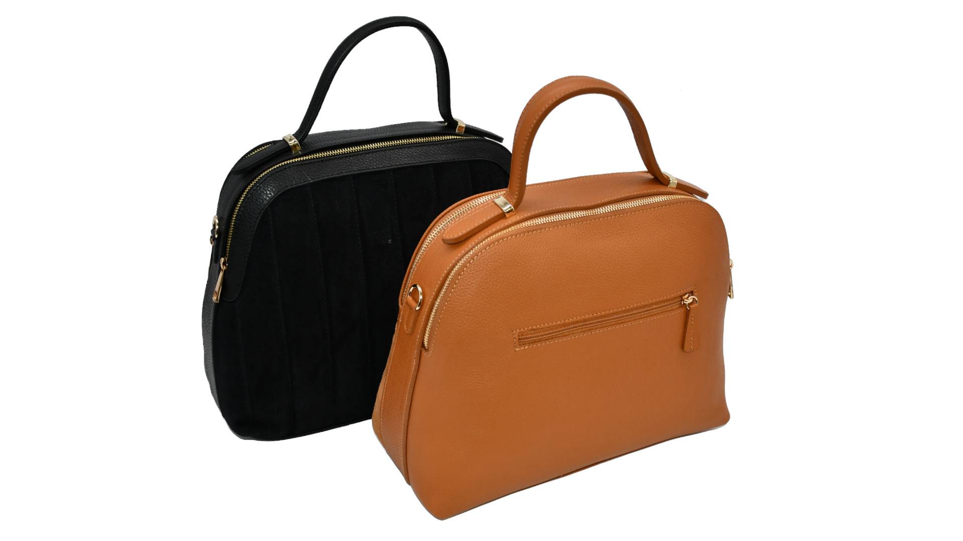Große Hand- und Umhängetasche, ECHTES LEDER / VERA PELLE / STYLED+MADE IN ITALY, L 35 x B 15 x H 29 (ohne Henkel/Griffe), Tragegriff aus Leder auf Mittelteil, VT COLLINOSO mit kleiner RV-Tasche, RT Wildleder, LI und RE jeweils ein Taschenbeutel  innen seitl. RV-Tasche und Einschubtasche, Umhängegurt einhängbar, Acc. gold, unverbindliche Preisempfehlung € 129,90 bis € 199,00 (Endverbraucherpreis)