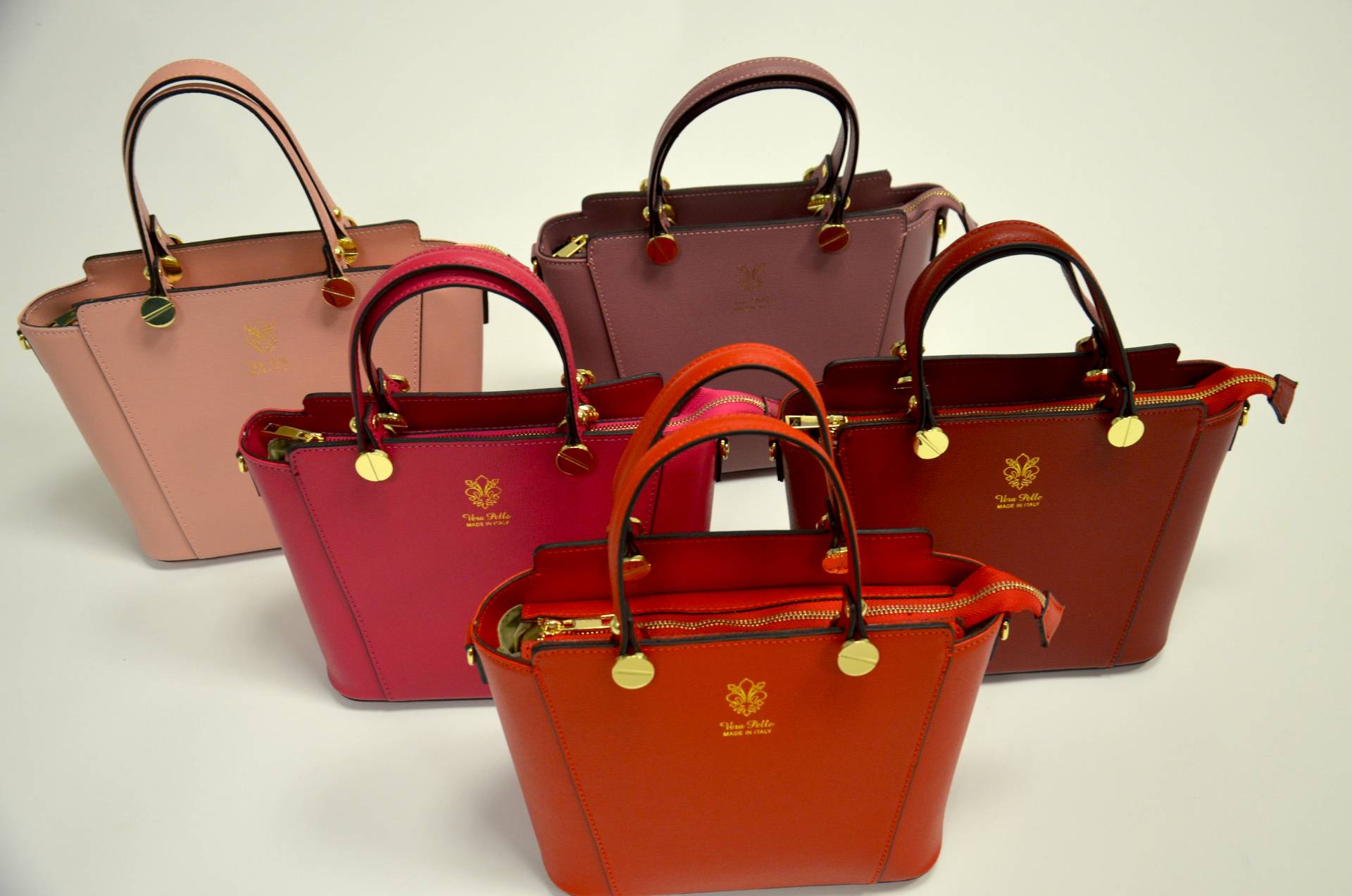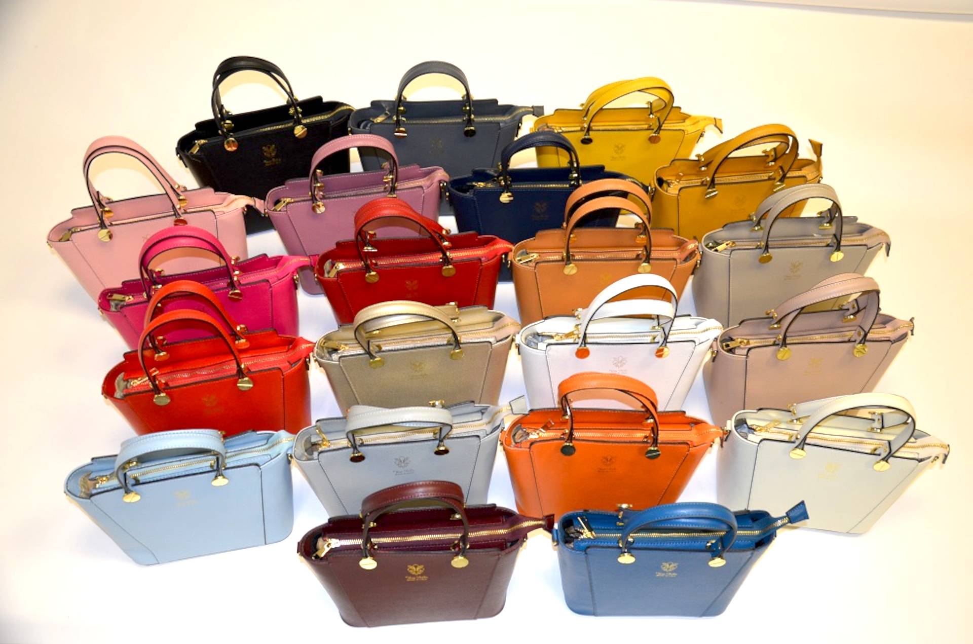Mittelgroße Hand- und Umhängetasche, ECHTES LEDER / VERA PELLE / STYLED+MADE IN ITALY, leichte Struktur, Minirechtecke unregelmäßig (rettangolo), diverse, Länge ca. 30 cm, Weite ca. 14 cm, Höhe ca. 21 cm (ohne Henkel/Griffe), unverbindliche Preisempfehlung € 99,90 bis € 149,90 (Endverbraucherpreis)