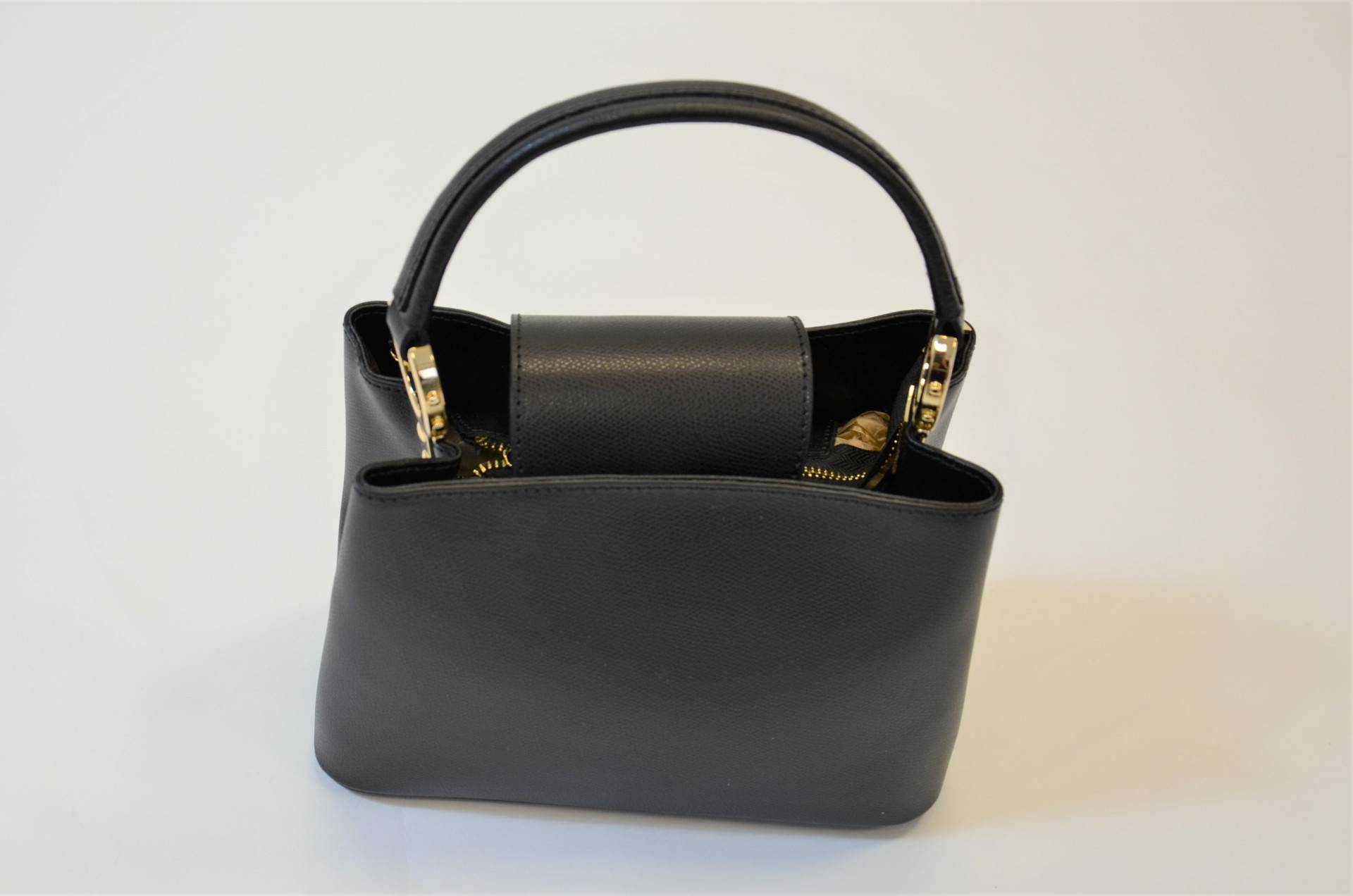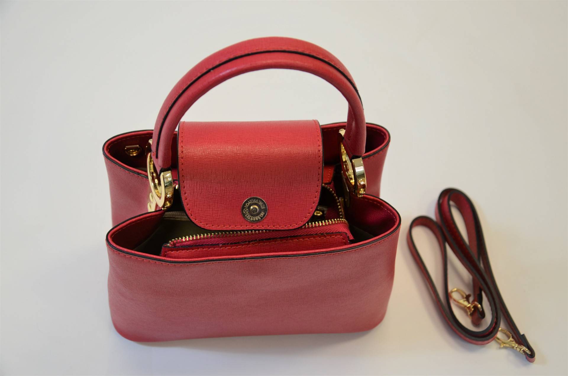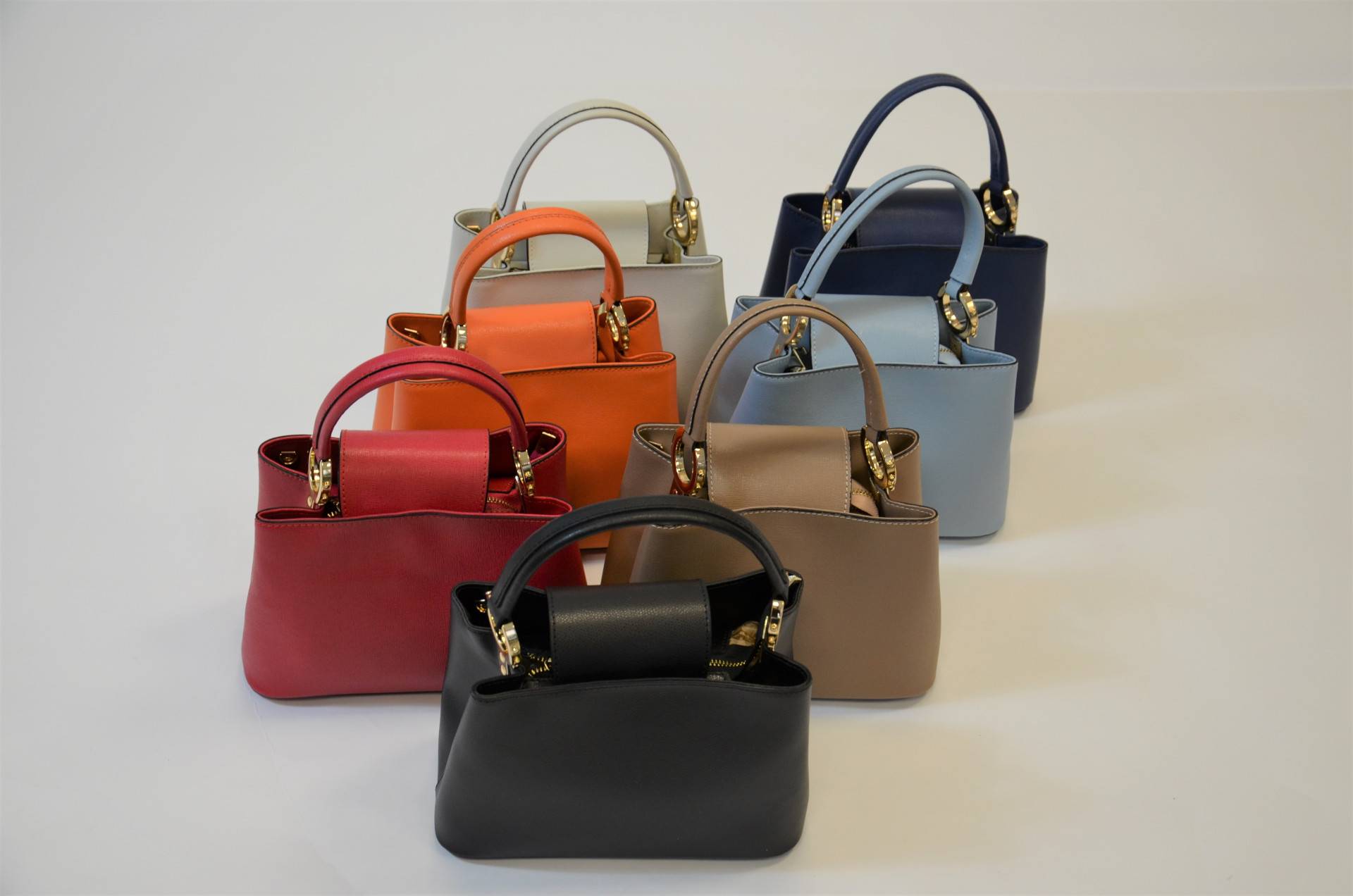Mittelgroße Hand- und Umhängetasche, ECHTES LEDER / VERA PELLE / STYLED+MADE IN ITALY, leichte Struktur, Minirechtecke unregelmäßig (rettangolo), alle Farben lieferbar, Länge ca. 25 cm, Weite ca. 12 cm, Höhe ca. 17 cm variabler Umhängegurt einhängbar, Überwurfpatte mit Innendurckknopf, mittig mit RV und Innen- plus seitl. RV-Tasche, Acc. gold, Innenfutter, Synthetik, hell, unverbindliche Preisempfehlung € 89,90 bis € 139,90 (Endverbraucherpreis)