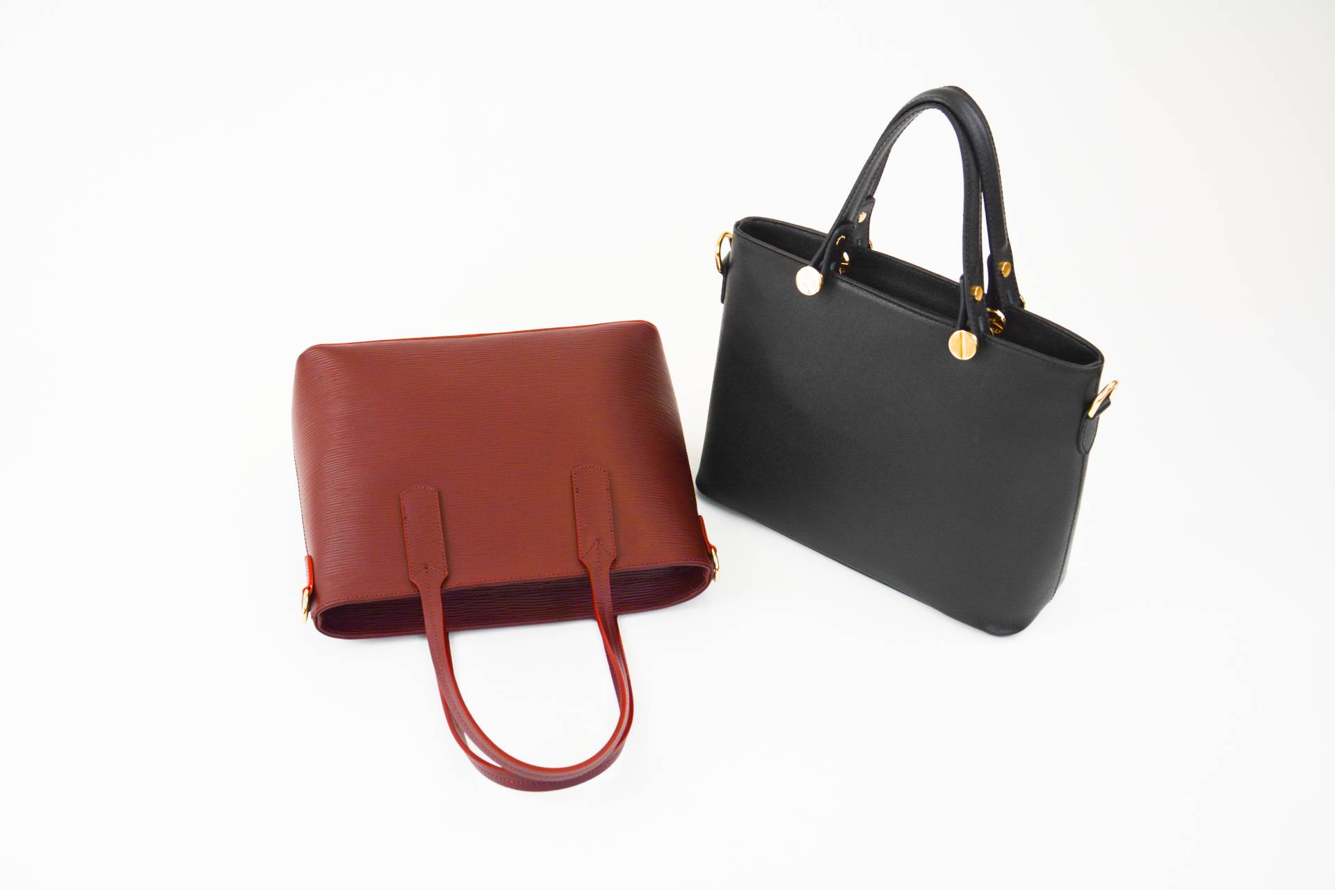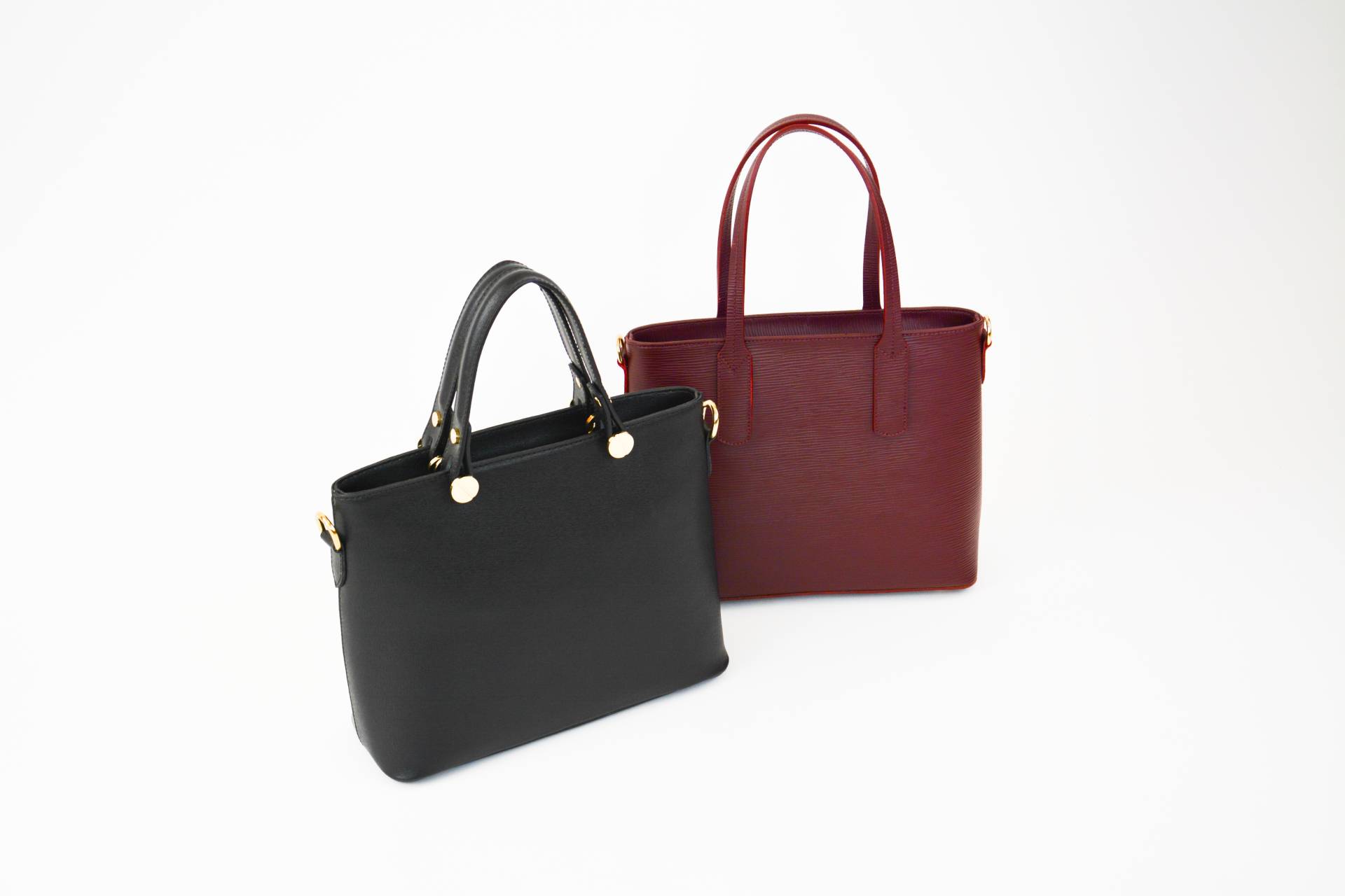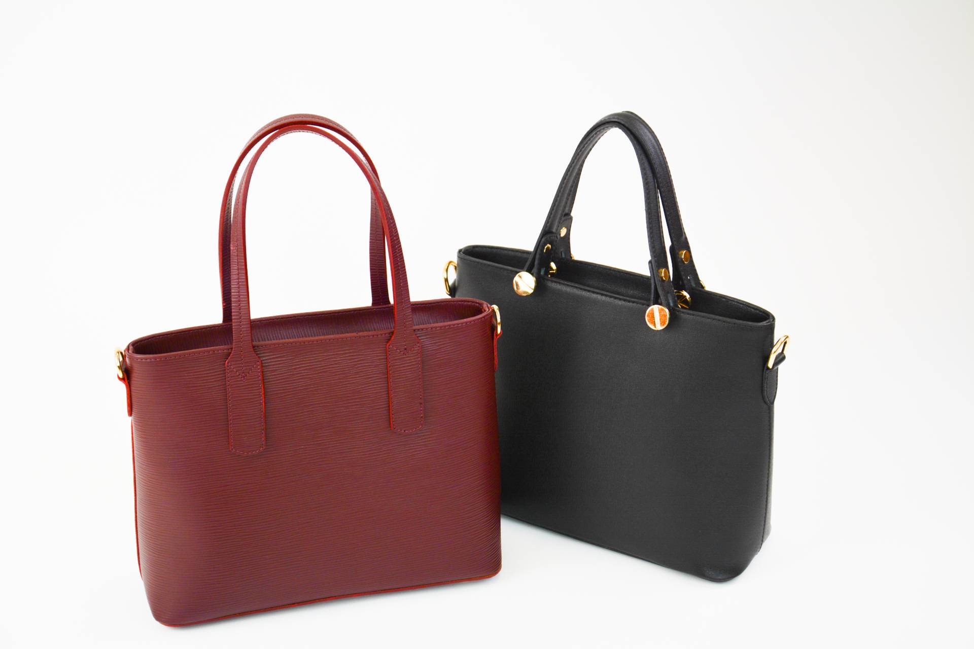 Handtasche mit Trageriemen (optional), ECHTES LEDER / VERA PELLE / STYLED+MADE IN ITALY, Reliefleder, schwarz, dunkelrot, uni, Länge ca. 33 cm, Weite ca. 12 cm, Höhe ca. 25 cm (ohne Henkel/Griffe), unverbindliche Preisempfehlung € 125,90 bis € 176,90 (Endverbraucherpreis)