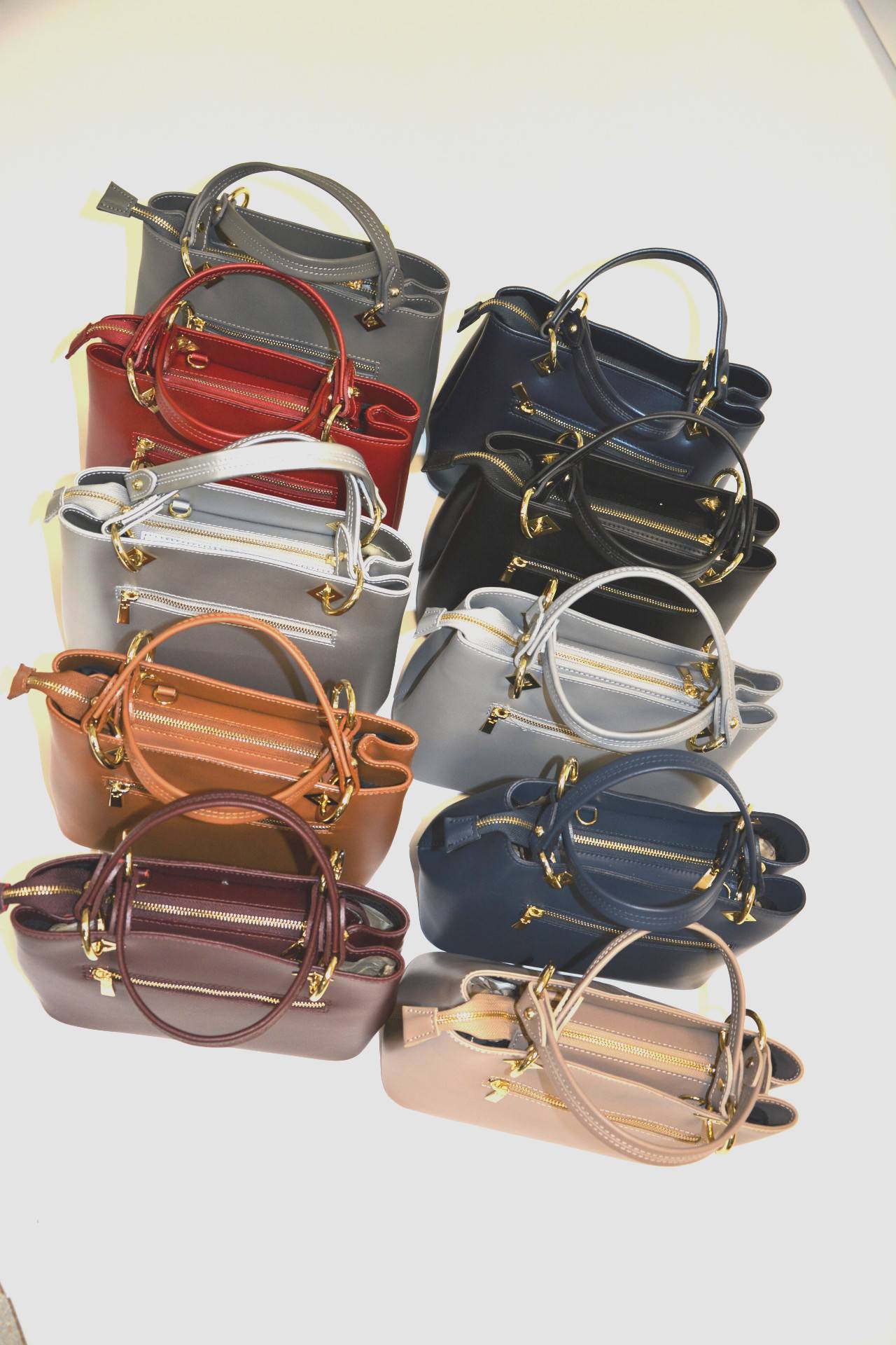 Kleine Handtasche auch zum Umhängen, ECHTES LEDER / VERA PELLE / STYLED+MADE IN ITALY, Leder glatt, leichter Glanz (lucente), diverse, Länge ca. 28 cm, Weite ca. 24 cm, Höhe ca. 13 cm (ohne Henkel/Griffe), unverbindliche Preisempfehlung € 99,90 bis € 149,90 (Endverbraucherpreis)