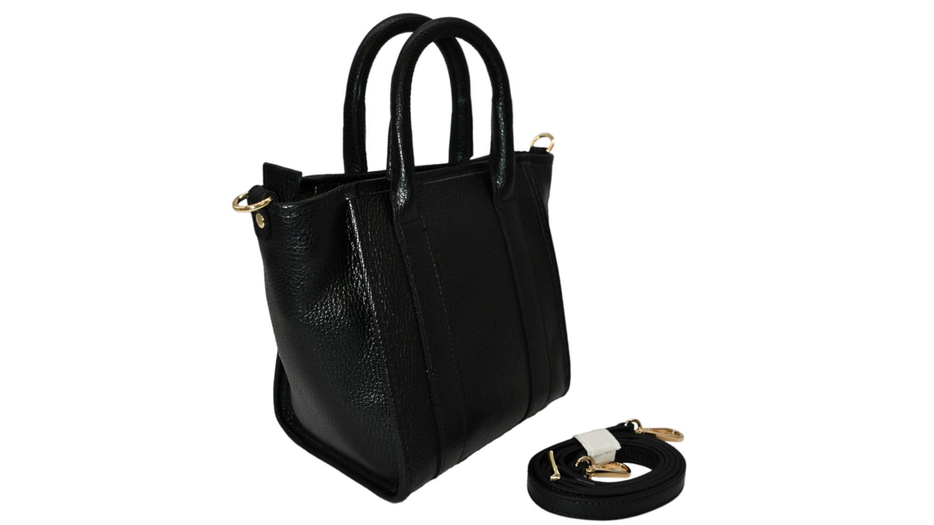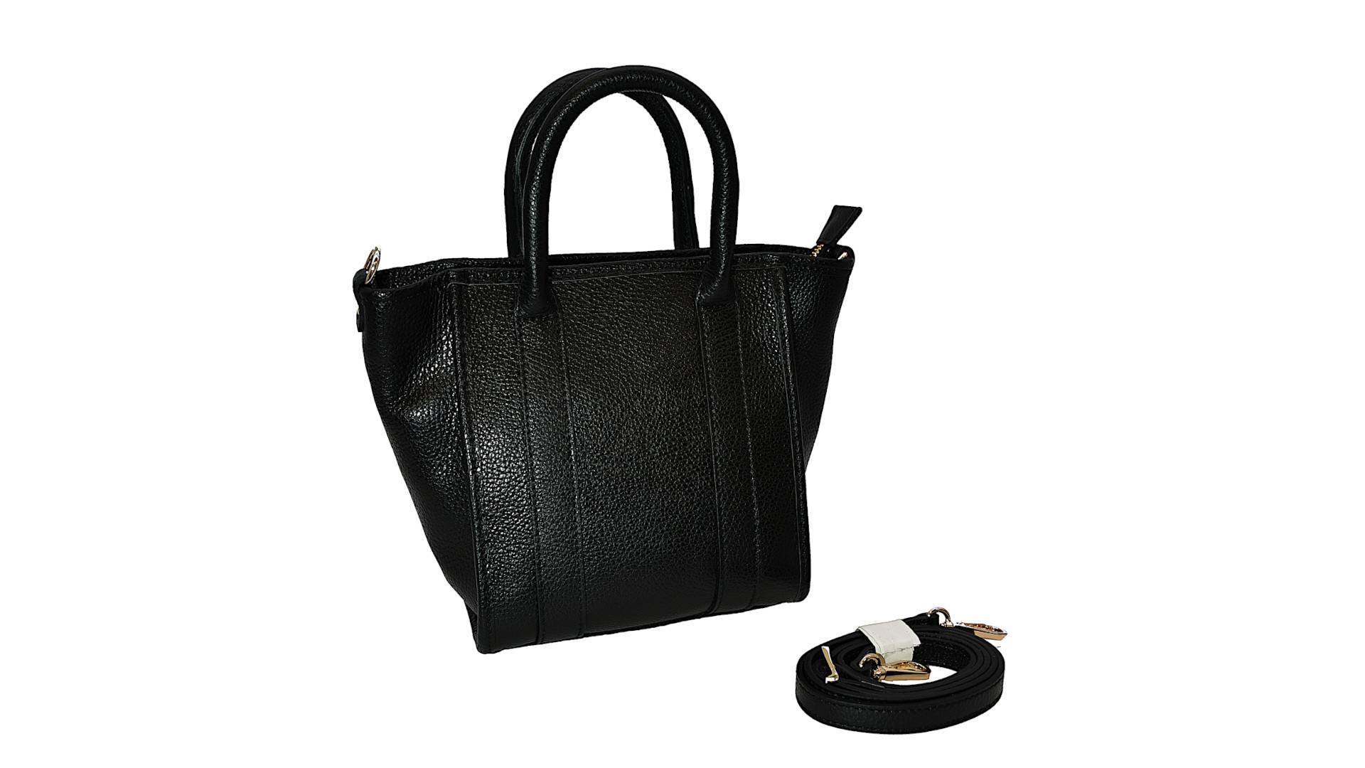 Kleine Hand- und Umhängetasche, ECHTES LEDER / VERA PELLE / STYLED+MADE IN ITALY, L 19 x B 15 x H 20 (ohne Henkel/Griffe) Tragegriffe aus Leder, mittig RV, innen seitl. RV und Einschubtasche, Acc. gold, Umhängegurt Leder, unverbindliche Preisempfehlung € 99,90 bis € 149,00 (Endverbraucherpreis)