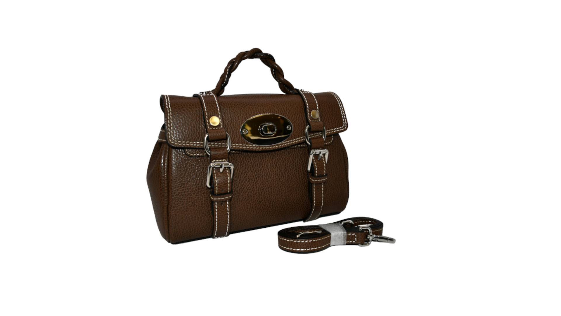 Kleine Hand- und Umhängetasche, ECHTES LEDER / VERA PELLE / STYLED+MADE IN ITALY, L 25 x B 9 x H 18 (ohne Henkel/Griffe), Tragegriffe (geflochten) mittig auf Überwurfpatte Drehverschluss, innen seitl. RV und große Einschubtasche, Acc. silber, Umhängegurt Leder, unverbindliche Preisempfehlung € 129,90 bis € 199,00 (Endverbraucherpreis)