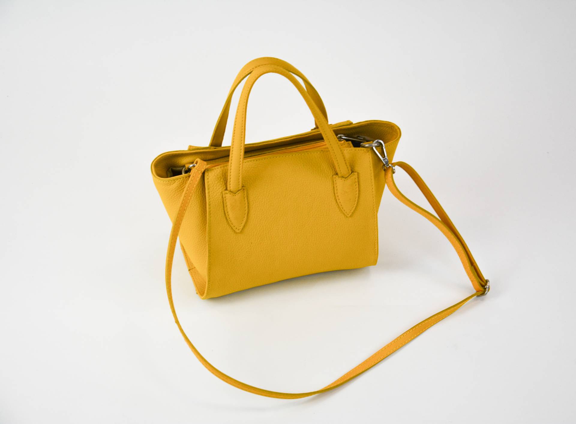 Mittelgroße Hand- und Umhängetasche, ECHTES LEDER / VERA PELLE / STYLED+MADE IN ITALY, Leder leicht hubbelig, Länge ca. 25 cm, Weite ca. 12 cm, Höhe ca. 22 cm (ohne Henkel/Griffe), unverbindliche Preisempfehlung € 49,90 bis € 69,90 (Endverbraucherpreis)