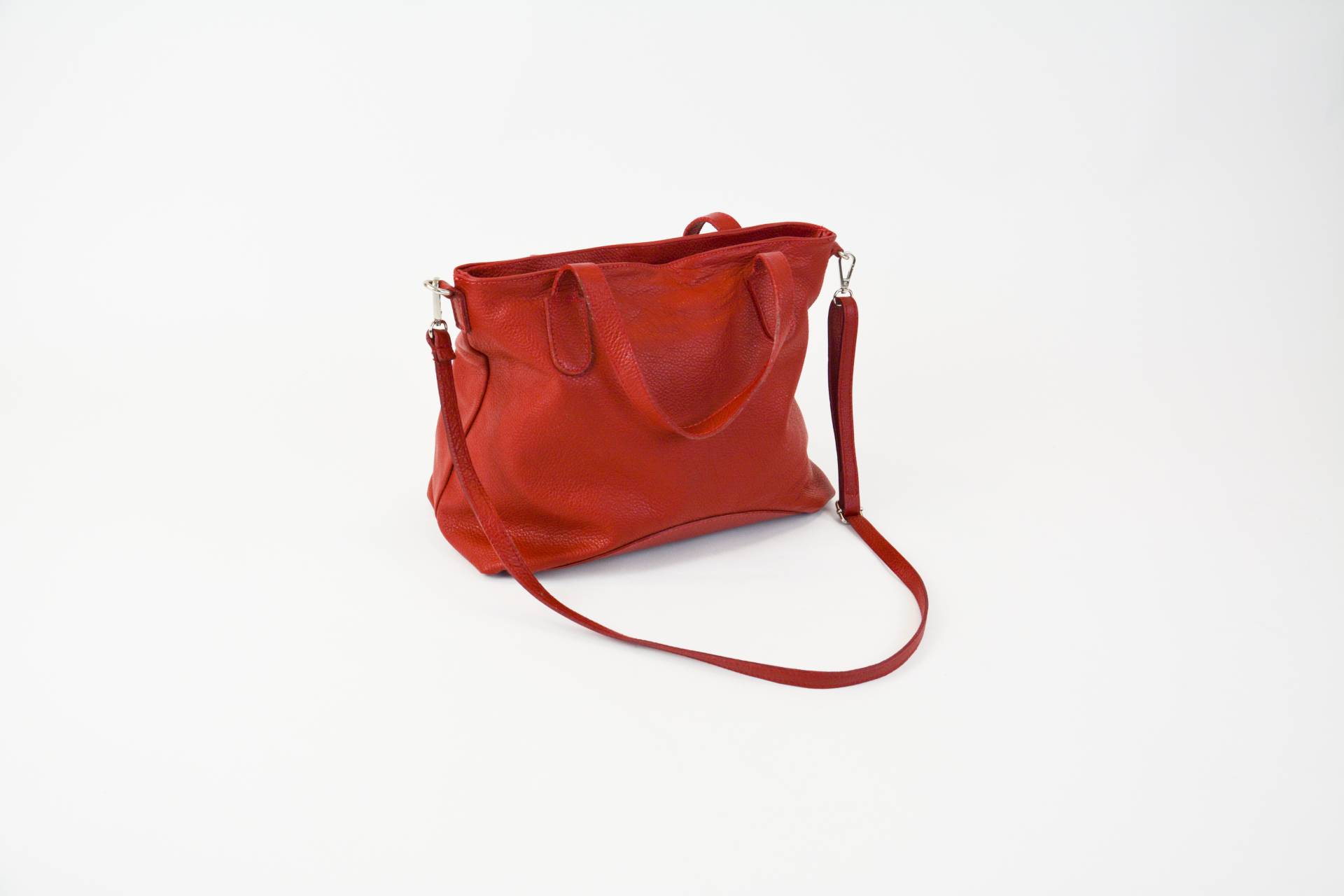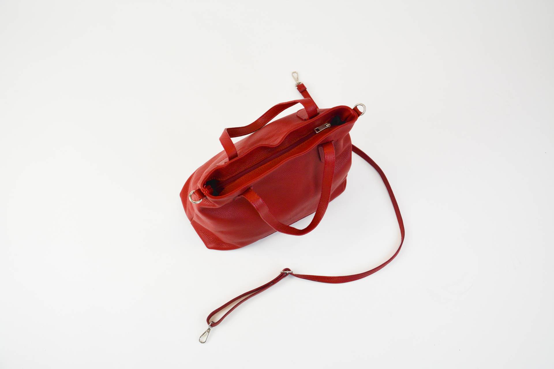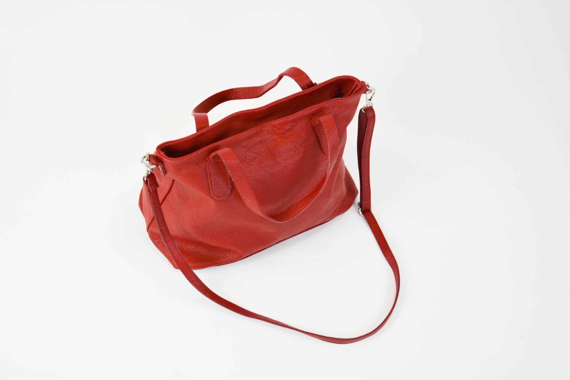 Große Hand- und Umhängetasche, ECHTES LEDER / VERA PELLE / STYLED+MADE IN ITALY, Leder leicht hubbelig, Länge ca. 40 cm, Weite ca. 14 cm, Höhe ca. 30 cm (ohne Henkel/Griffe), unverbindliche Preisempfehlung € 49,90 bis € 69,90 (Endverbraucherpreis)