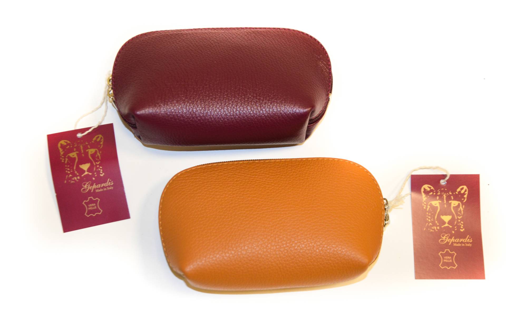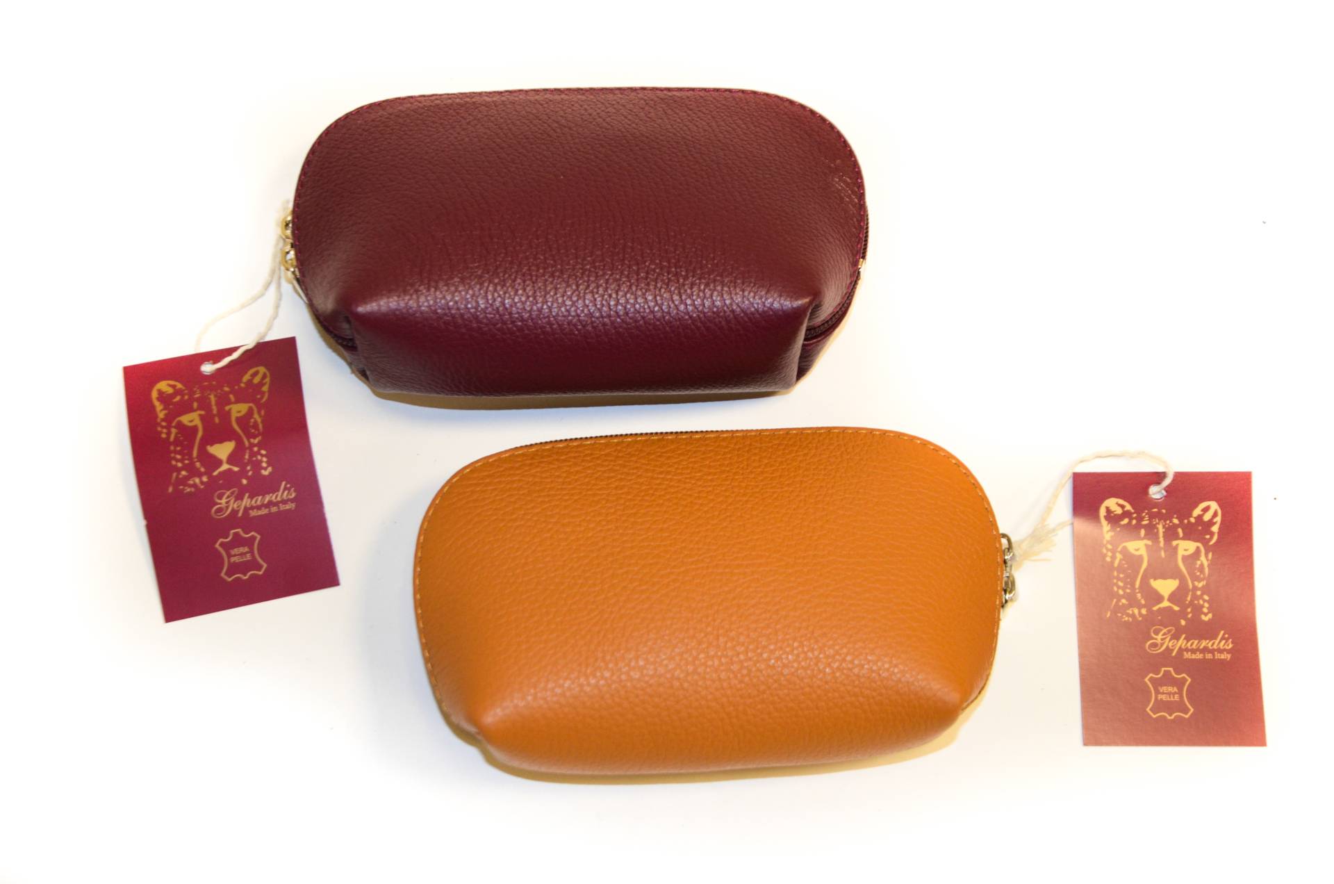 Mittelgroße Kosmetiktasche, ECHTES LEDER / VERA PELLE / STYLED+MADE IN ITALY, Leder leicht hubbelig, diverse, uni, Länge ca. 18 cm, Weite ca. 5 cm, Höhe ca. 10 cm (ohne Henkel/Griffe), unverbindliche Preisempfehlung € 12,90 bis € 19,90 (Endverbraucherpreis)