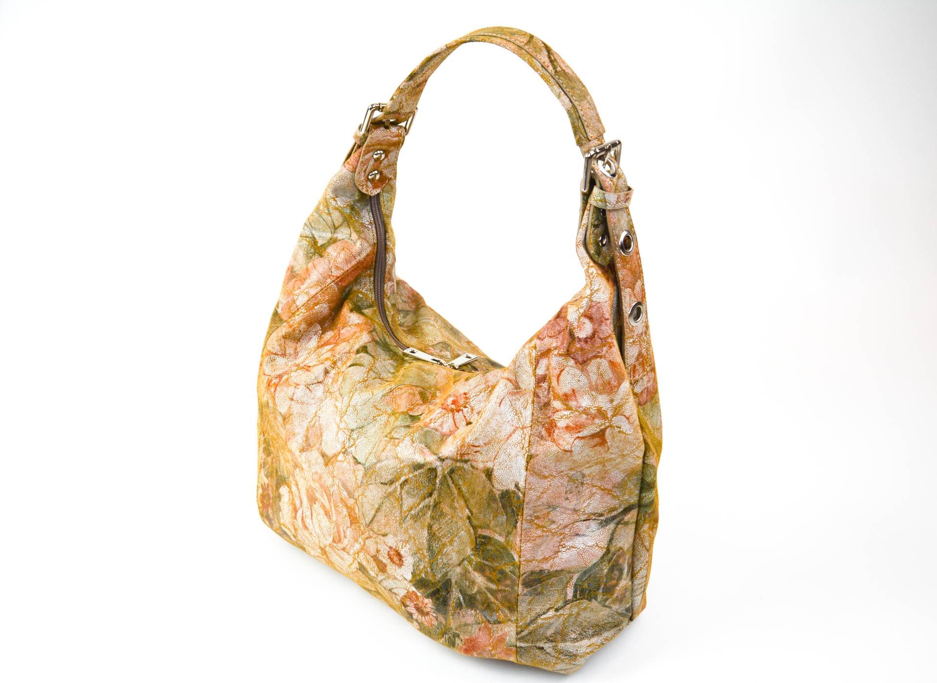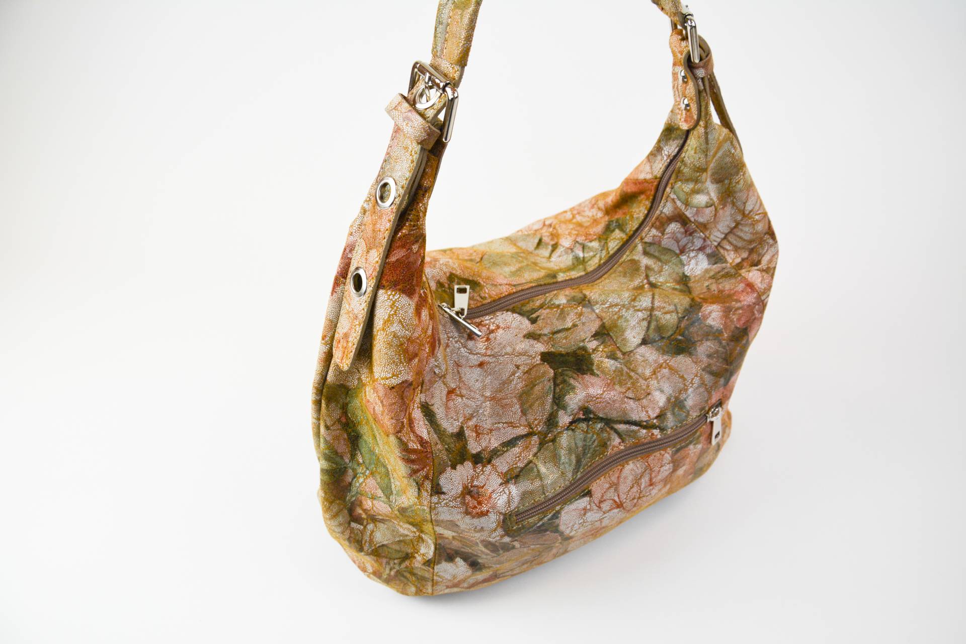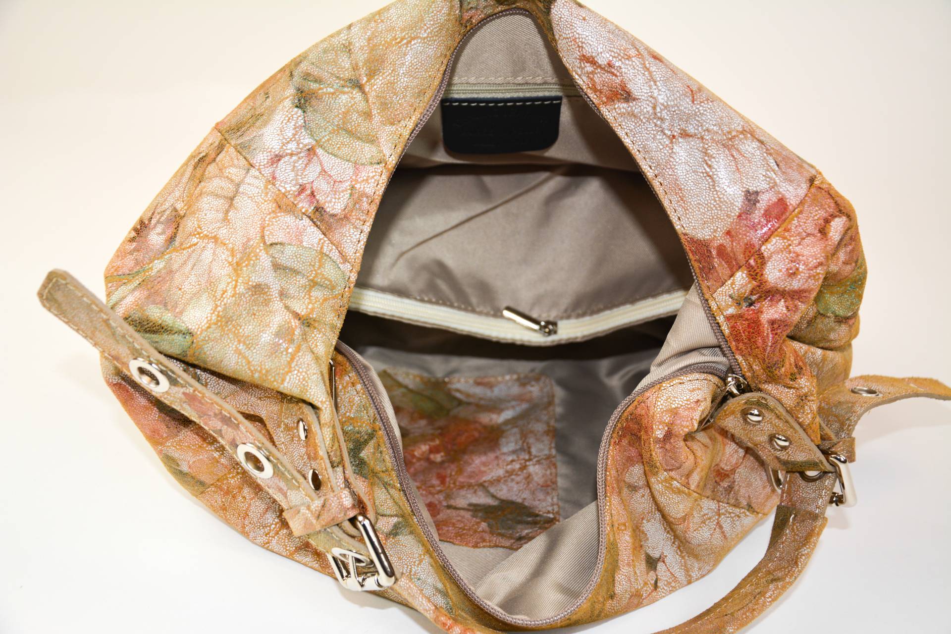 Shopper, ECHTES LEDER / VERA PELLE / STYLED+MADE IN ITALY, "Gobelindruck" mit Glanz, Blüten und Blätter, floral Blüten, Länge ca. 43 cm, Weite ca. 4 cm, Höhe ca. 30 cm (ohne Henkel/Griffe), unverbindliche Preisempfehlung € 105,90 bis € 149,90 (Endverbraucherpreis)