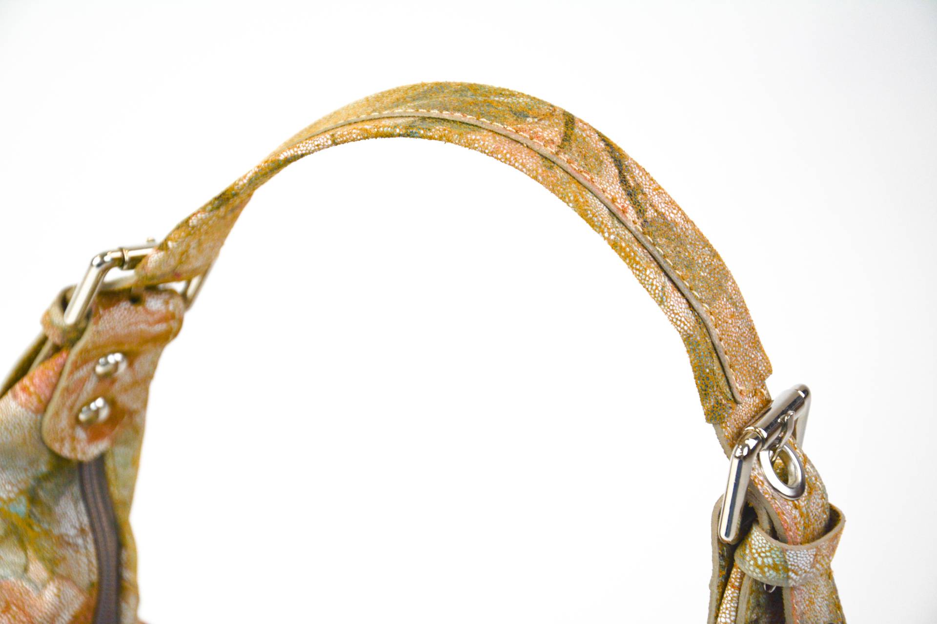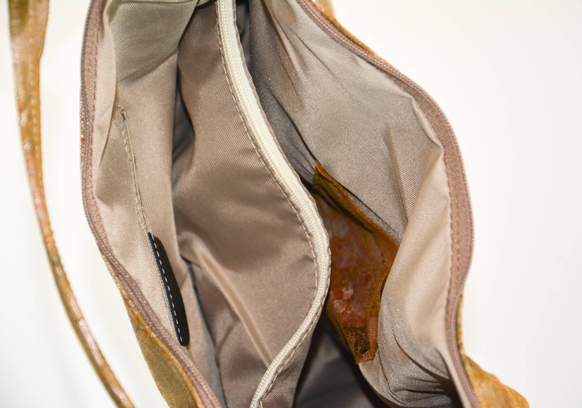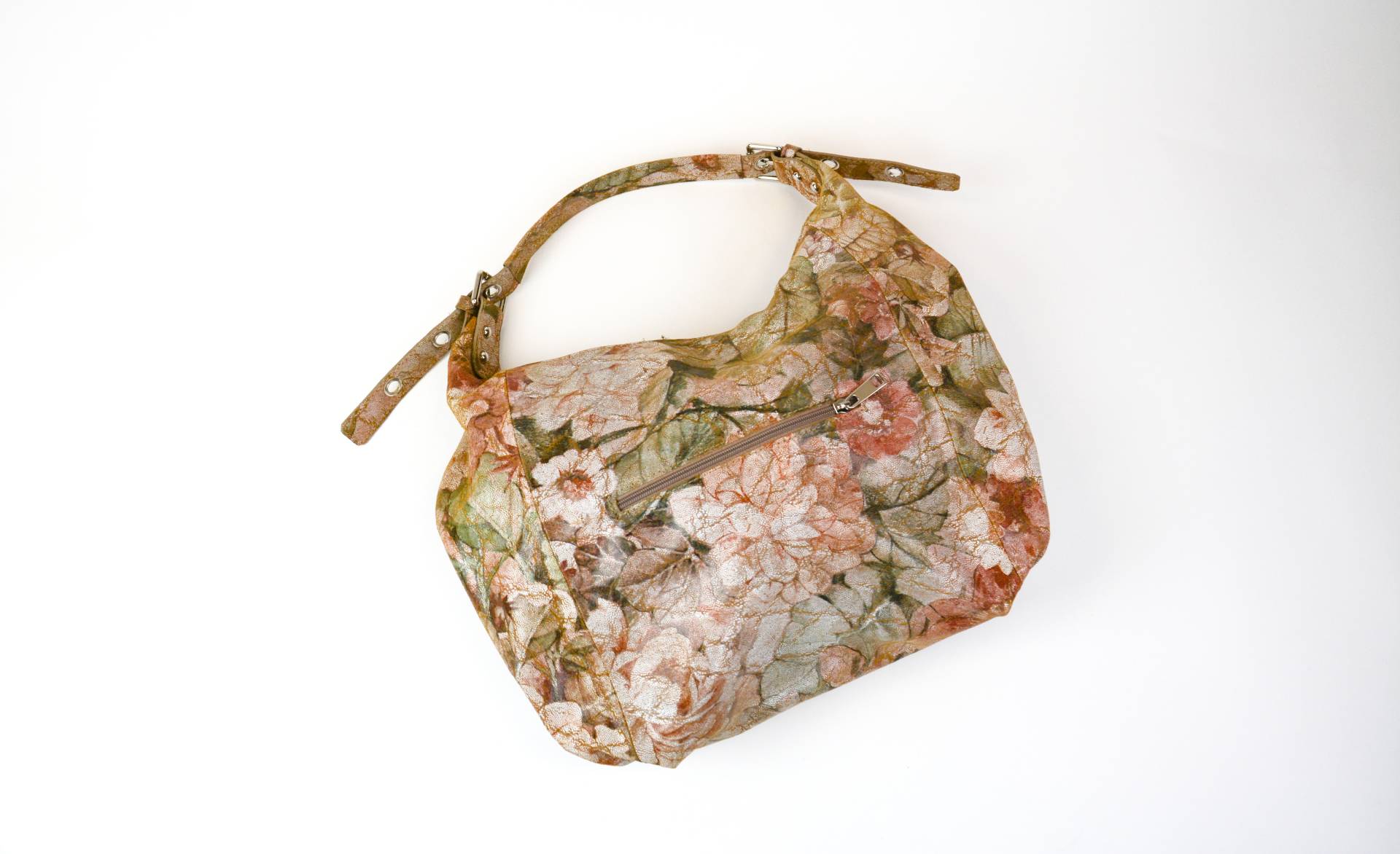 Shopper, ECHTES LEDER / VERA PELLE / STYLED+MADE IN ITALY, "Gobelindruck" mit Glanz, Blüten und Blätter, floral Blüten, Länge ca. 43 cm, Weite ca. 4 cm, Höhe ca. 30 cm (ohne Henkel/Griffe), unverbindliche Preisempfehlung € 105,90 bis € 149,90 (Endverbraucherpreis)